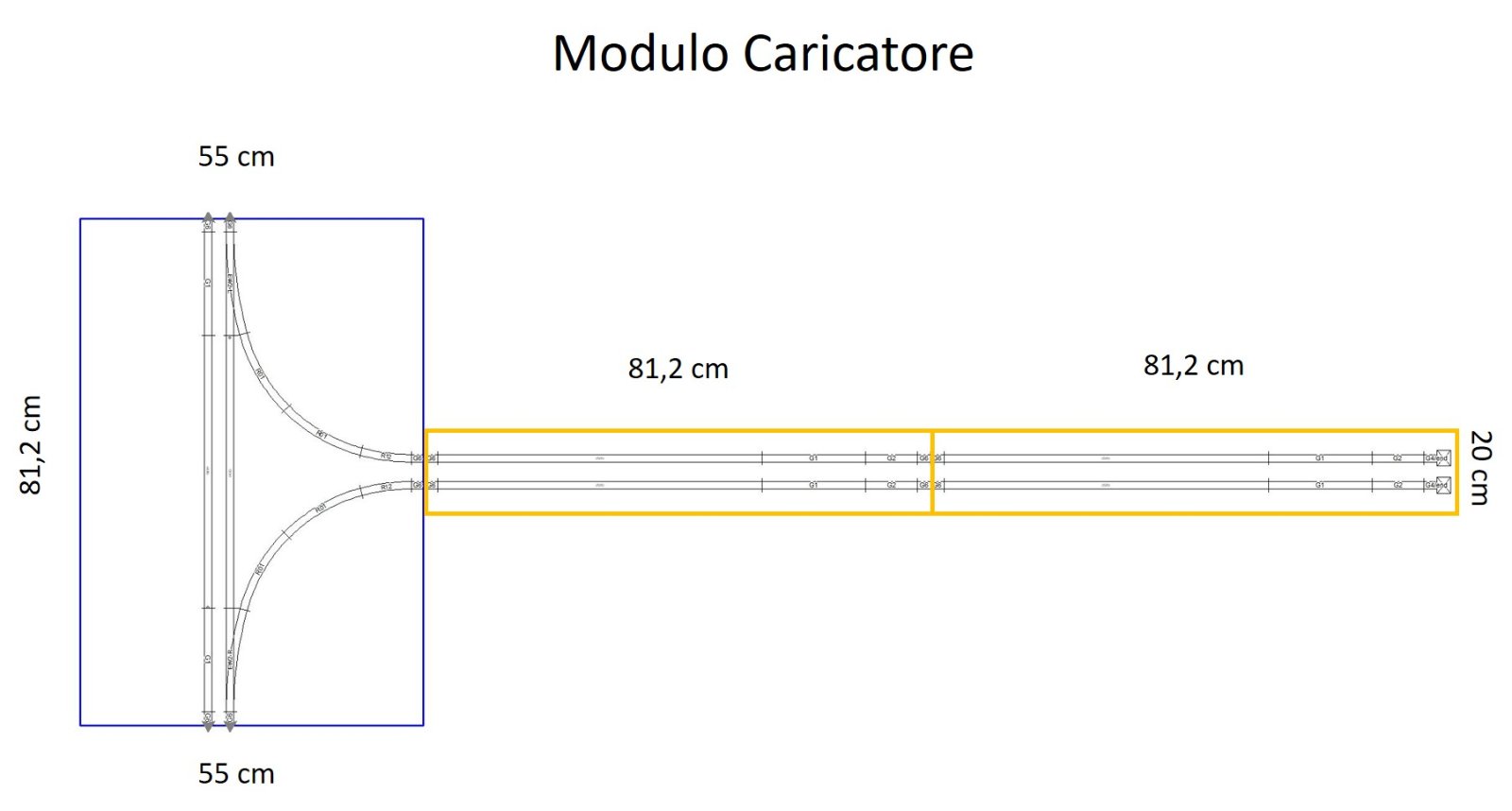 Ecco perché avevo pensato a due moduli da 70 cm con dei retromoduli due per le curve e uno per il caricatore di esigua larghezza, proprio per la trasportabilità.