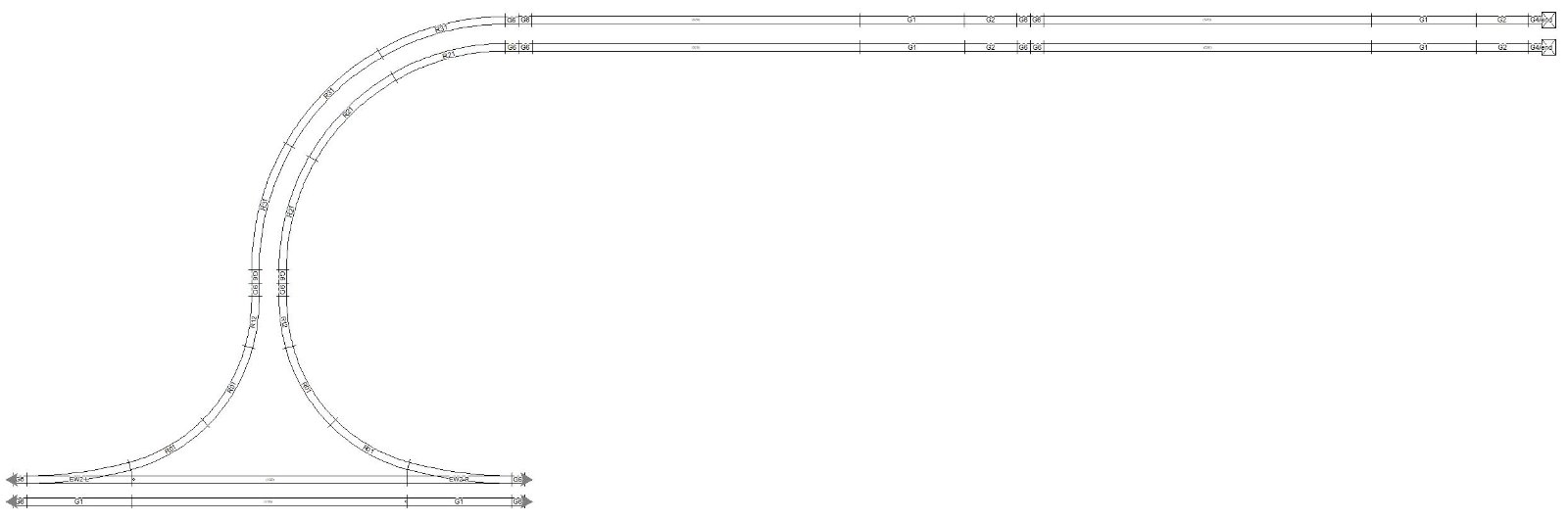 I 2 binari di carico e scarico sono posizionati su un piano composto da 3 elementi di 900 x 250 mm.