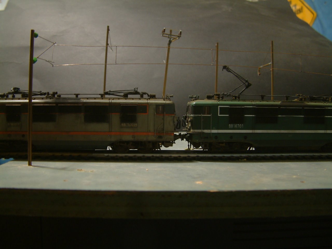 2) Catenaria ahimè ... perchè? Perchè è un gran lavoraccio in posa, è costosa (se non fai da te), delicata nella tesatura e odio locomotive elettriche che transitano a pantografi abbassati o leggeremente alzati sotto una stupenda ma delicata catenaria. Questo per mia personale esperienza, infatti sono passato alla trazione termica e le mie loco elettriche, transitano adeguatamente in coda ad una locomotiva a vapore o diesel, con gli archetti a riposo, su una linea secondaria, dove ancora non è stato posata la catenaria, oppure iniziano i primi lavori di stesura (al vero).