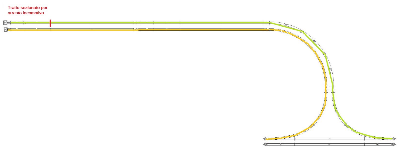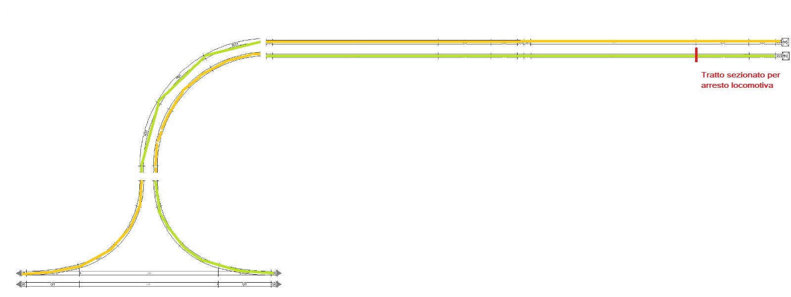 Inoltre per avere intercambiabilità dx o sx, farei entrambi i binari sezionati in fondo e metterei un interruttore per ciascun binario per dare corrente.
