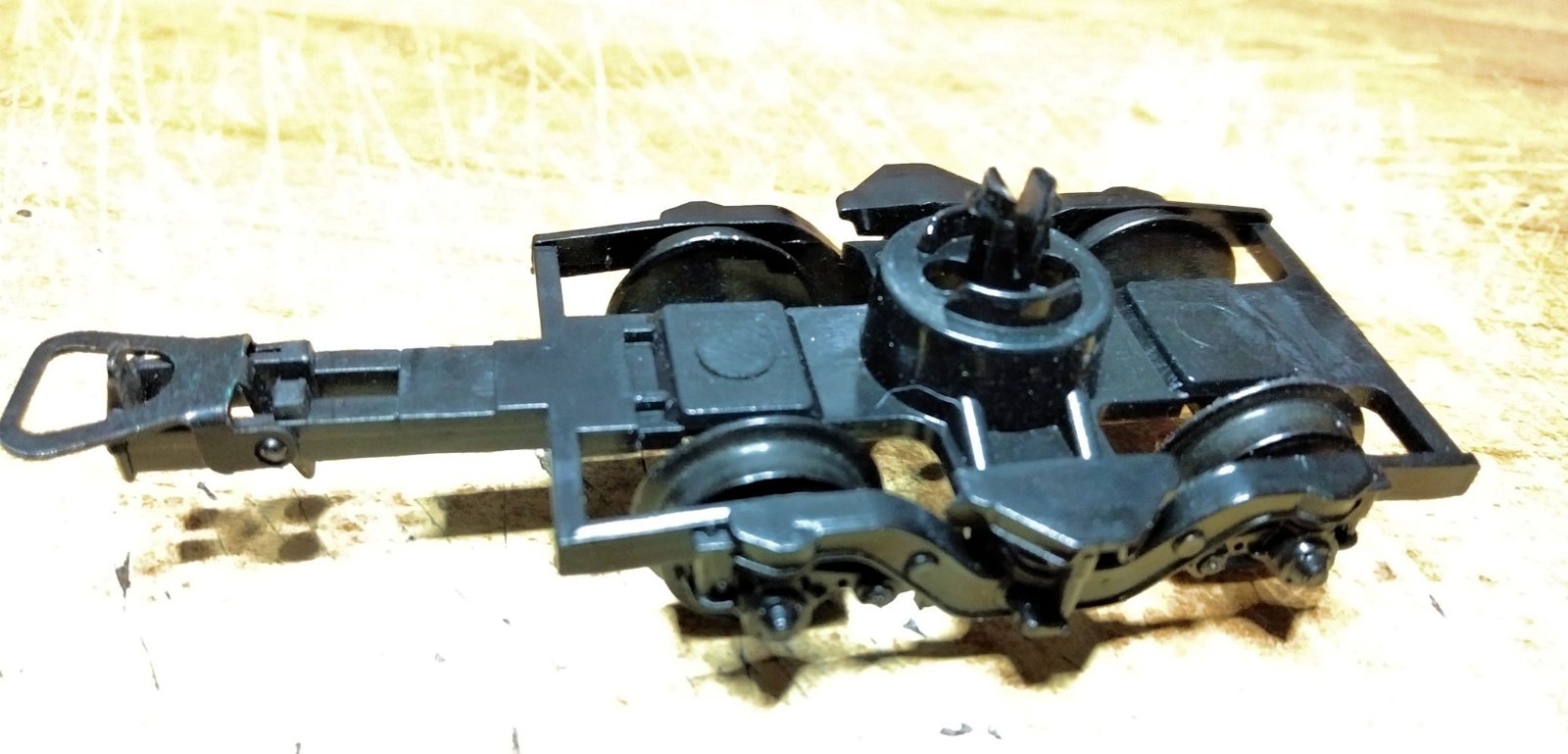 Secondo me per tagliare la testa al toro, potresti cambiare direttamente tutti i carrelli con altri dotati di porta-gancio e sale in metallo o segare via il gancio originale ed installare un timone di allontanamento dotato di porta-gancio (onestamente non so come sono fatte le carrozze passeggeri "serie").