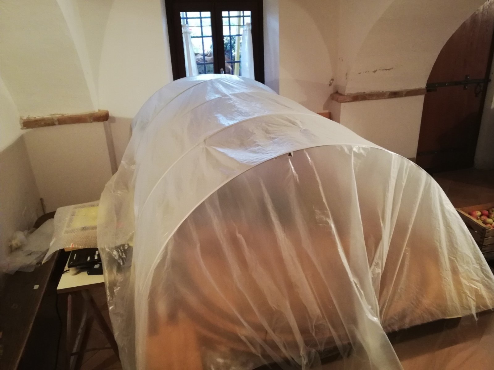 Grazie, contro la polvere non ho alternative, con delle centine evito che il telo pesi sugli alberi, facile da togliere e mettere non resta impigliato tra tetti i delle case ed altri accessori.