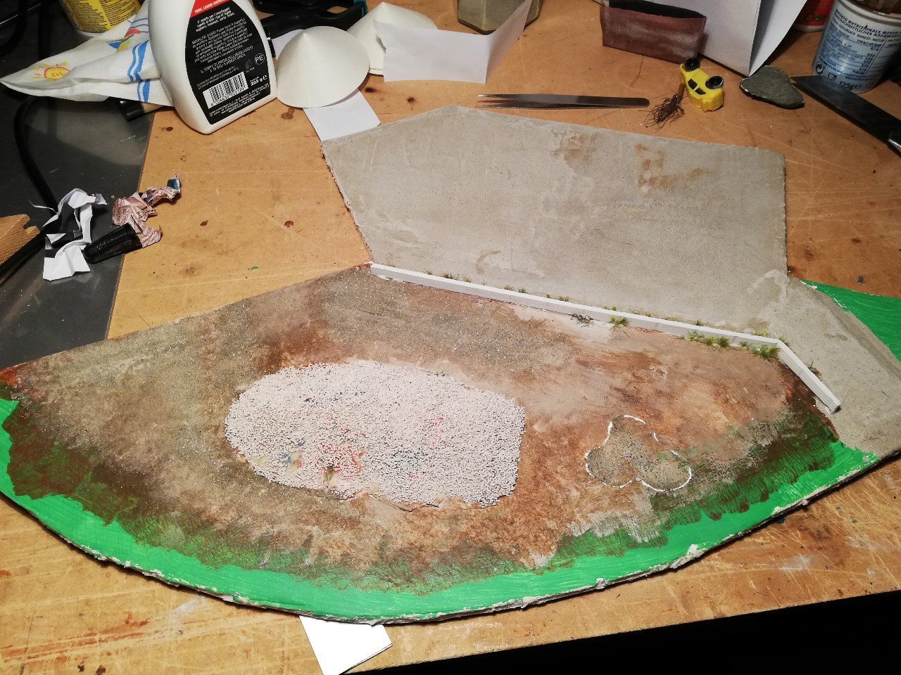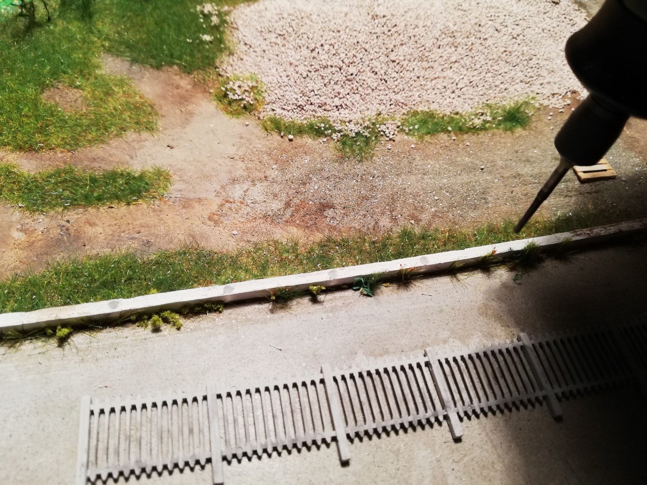 In questi giorni di tranquillità ho ripreso a lavorare su alcune parti del plastico in ristrutturazione. In particolare ho definito in un diorama separato che andrò poi ad inserire sul plastico nella zona 4 (v. Foto precedenti) dove è previsto un piccolo deposito di materiali ferroviari, traversine dismesse e ballast.