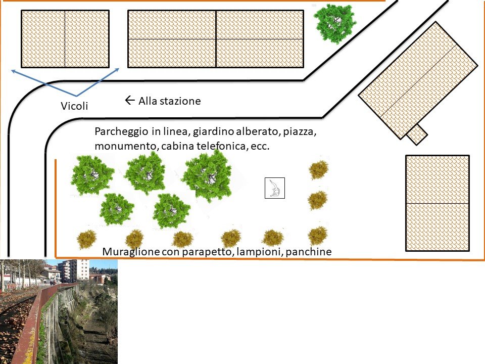 Se desideri mettere il muraglione da un lato, e vuoi scendere dall'altra parte con la strada che costeggia la piazza, ci troviamo in un classico borgo di casa nostra, vero?