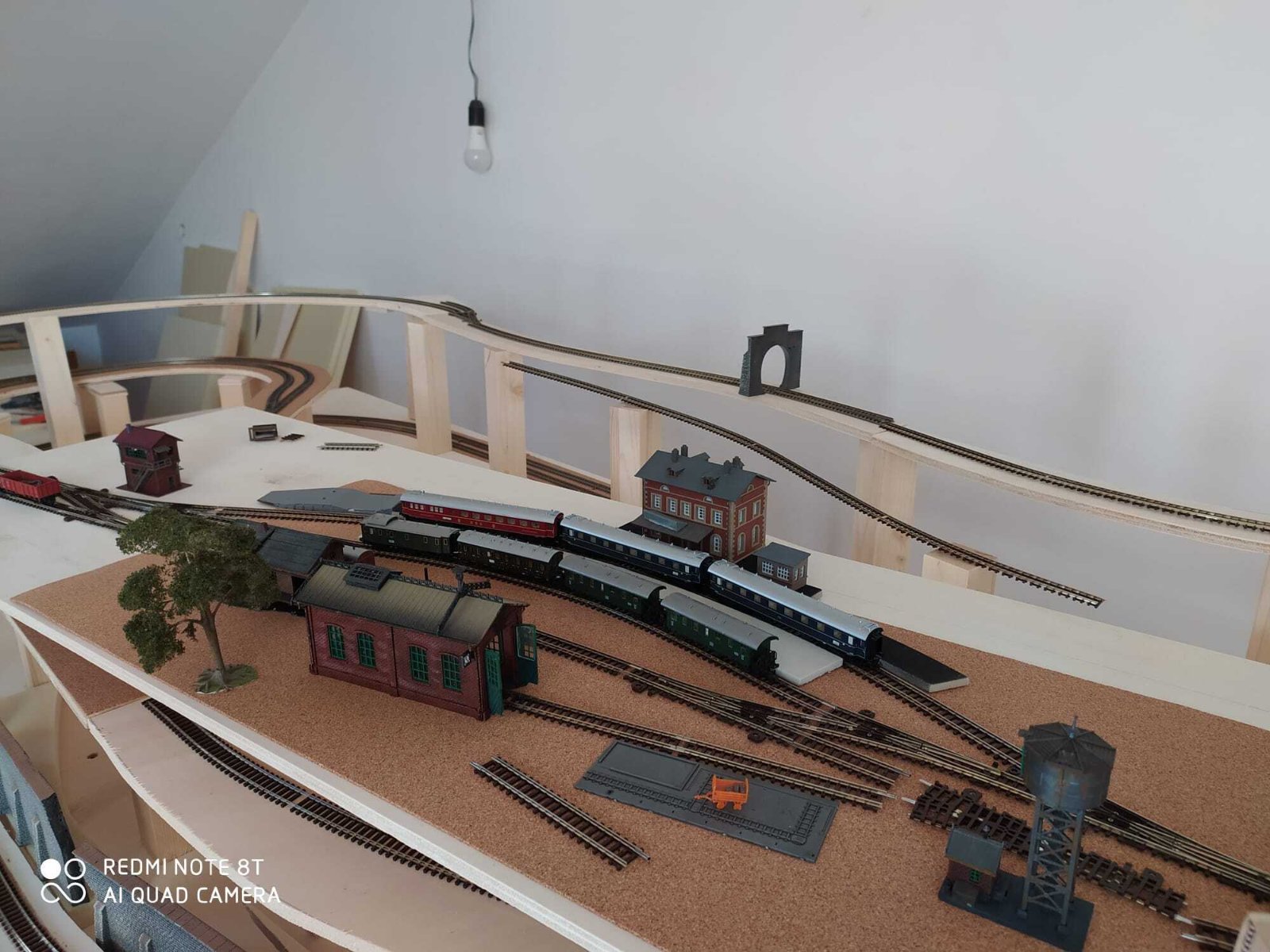 nei prossimi giorni dovrebbe arrivarmi il motore Tortoise che ho acquistato per fare una prova sui deviatoi FL senza massicciata, il motore esterno di questi scambi è davvero orribile... nell'attesa ho lavorato sulla soluzione propostami da Doc per la stazione secondaria (la superfice grigia vicno alla torre d'acqua è la futura carbonaia che devo ancora costruire) e questo è il risultato,
