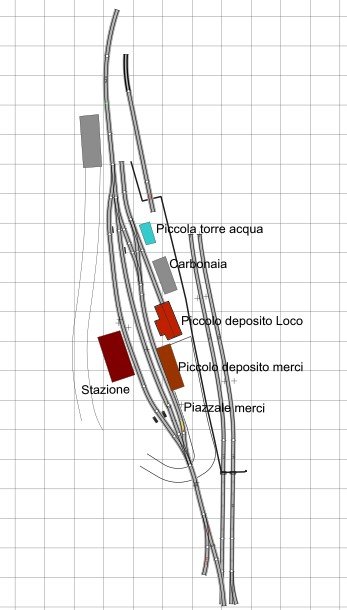 questa è una piccola stazione secondaria con uno scarsa movimentazione di merci, ciò detto prevedo di realizzare un passaggio, non custodito poco prima dei due deviatoi in basso in modo da poter accedere al magazzino, tieni presente che