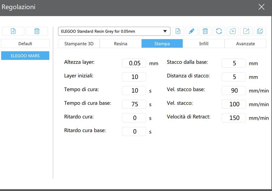 Posso sapere con quali valori stampi la tua resina grey Elegoo?