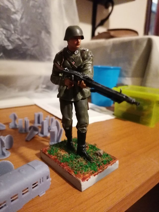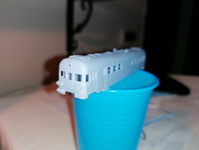 Ho rotto il ghiaccio e ho provato a stampare con la mia Anycubic photon mono : un soldato tedesco con MG, stampa complessa e molto dettagliata e la prima carrozzeria di una "littorina" con la quale desidero realizzare una coppia (una motorizzata e una rimorchiata). Ho dato il primer ad ambedue le stampe e poi dipinto con le scarse capacità artistiche di cui sono in possesso. La littorina, questa sarà la rimorchiata, l'ho corredata con un telaio carrellato che ho ricavato da uno dei tanti doppioni di carrozza San Gottardo De Agostini opportunamente accorciato. E' in corso l'applicazione dei mancorrenti, vetri e l'impianto luci a led smd. Sottopongo alla vostra attenzione e critiche i miei risultati che, sebbene ritengo perfettibili, personalmente non mi deludono.