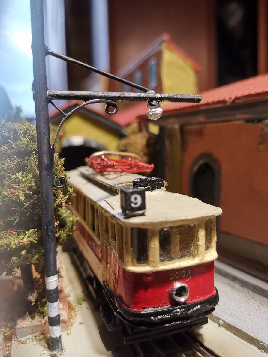 cercherò di migliorare alcuni particolari come gli isolatori poi tenderò il filo della linea aerea.