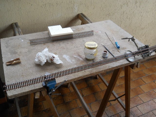 Ciao ragazzi, I binari per il diorama del Leopold a Milano sono tutti incollati, ora posso pensare alla massicciata ( lavoro che non mi piace fare) alla relativa sporcatura e alla verniciatura dei binari....😊