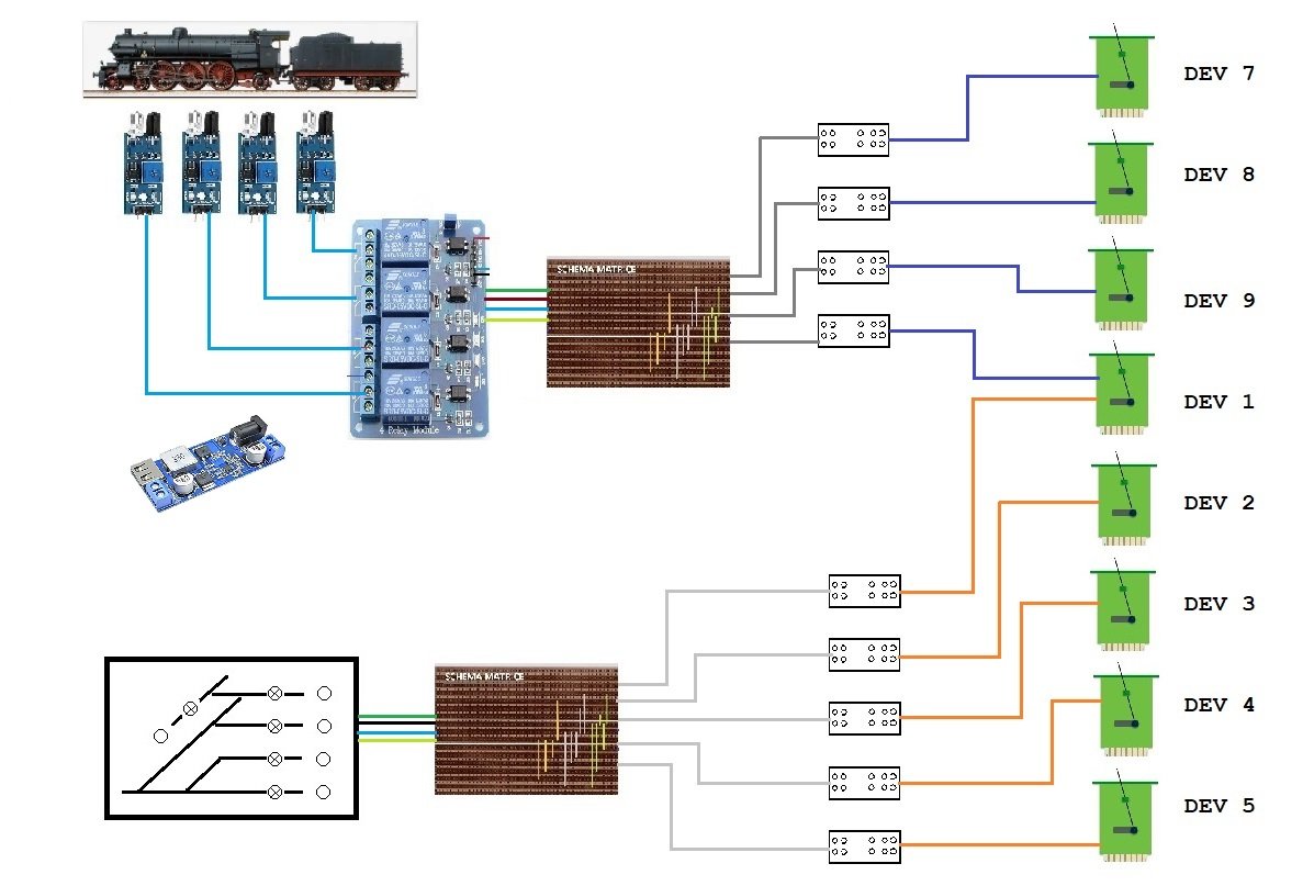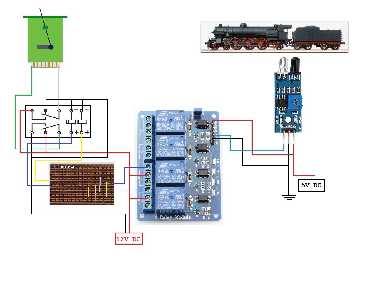 Il sensore, con i diodi posti a livello delle traversine, attivato dal passaggio del convoglio, fa scattare un relé (equivalente alla pressione di un pulsante elettrico), che a sua volta, tramite una matrice di diodi, muove i motori dei deviatoi necessari tramite relè bistabili.