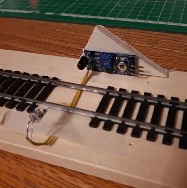 Quanto esposto sopra sottintende la collocazione dei sensori a livello delle traversine; sensori del tipo in uso dedicato ad Arduino, con i diodi, emettitore e ricevitore, affiancati e attivati per riflesso dal passaggio di un oggetto nel raggio di pochi centimetri.