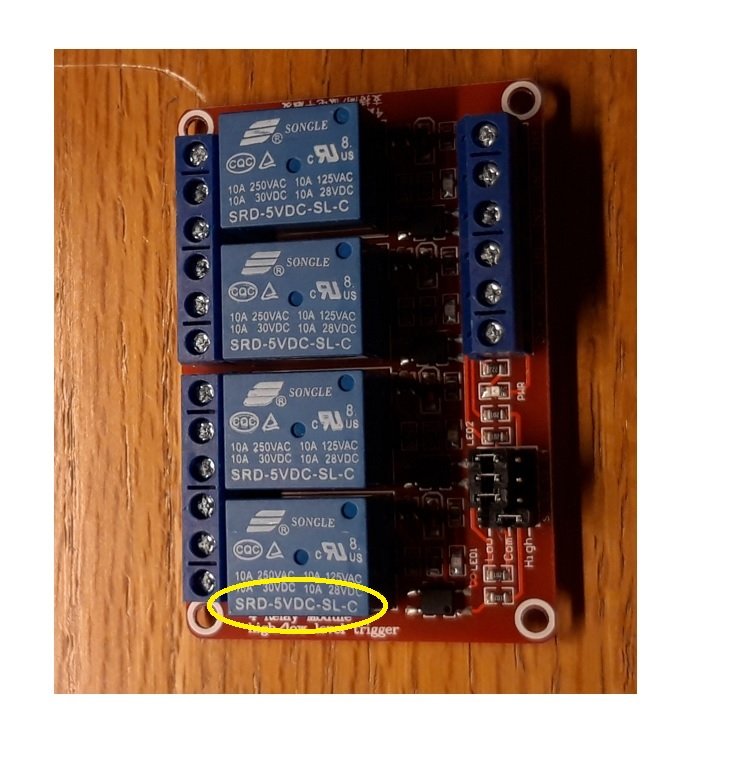 Come dicevo, ho usato dei blocchi di relé per Arduino, quelli che funzionano a 5V, e che hanno la caratteristica che possono essere attivati sia da segnali alti (+5V) che bassi (0V).