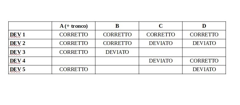 Da questa tabella si ricava la tabella finale utile a costruire la matrice