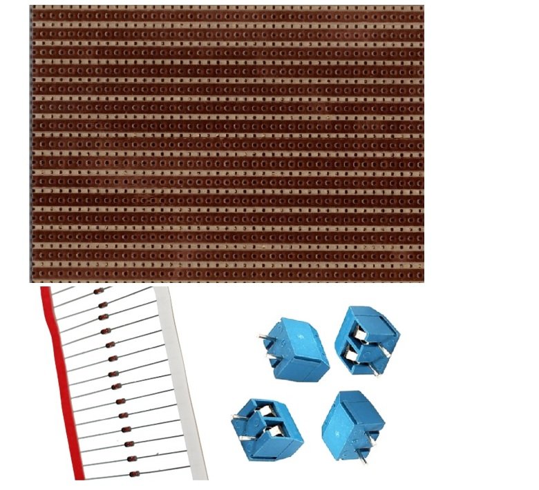 Per realizzare un matrice servono una basetta millefori con piste ramate e un certo numero di diodi; utili anche dei morsetti a vite da circuito stampato per le connessioni elettriche.