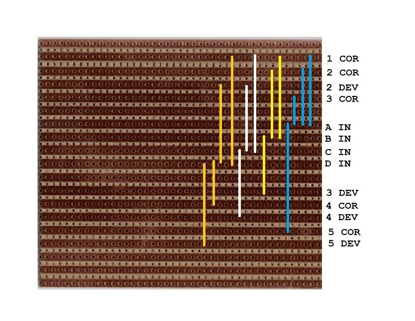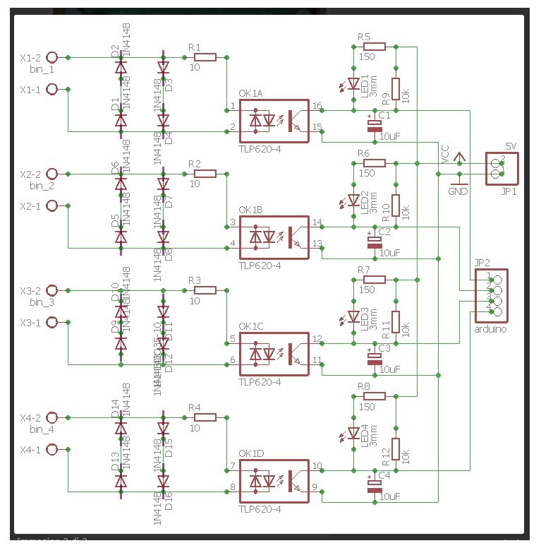 Anche qui riporto la tabella per predisporre la matrice e l’aspetto dei collegamenti, nonché lo schema del piano binari per avere un riferimento logico.