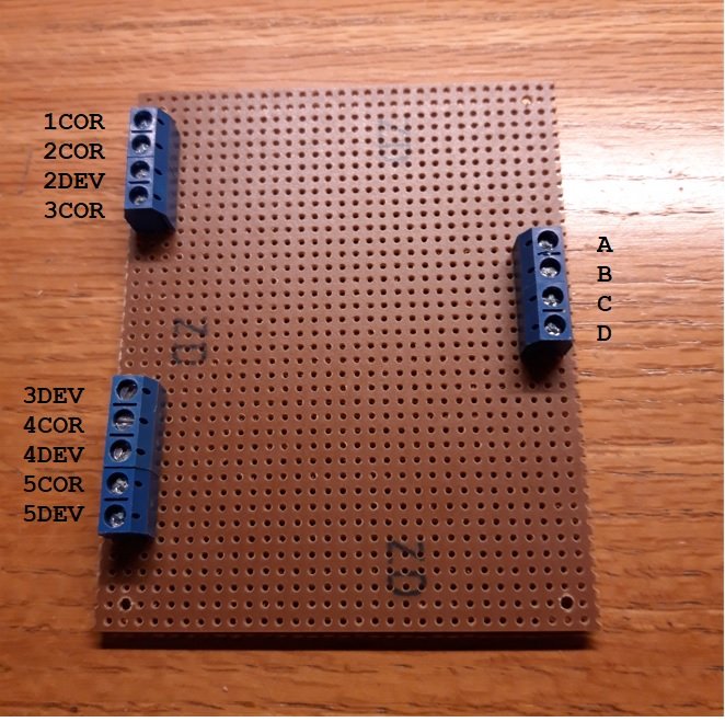 Partiamo dalla situazione iniziale dove si possono intravedere i servomotori ciascuno collegato ad una sua basetta che li alimenta, polarizza il cuore del deviatoio e invia un segnale al sinottico dove si illumina un led relativo alla posizione del deviatoio.