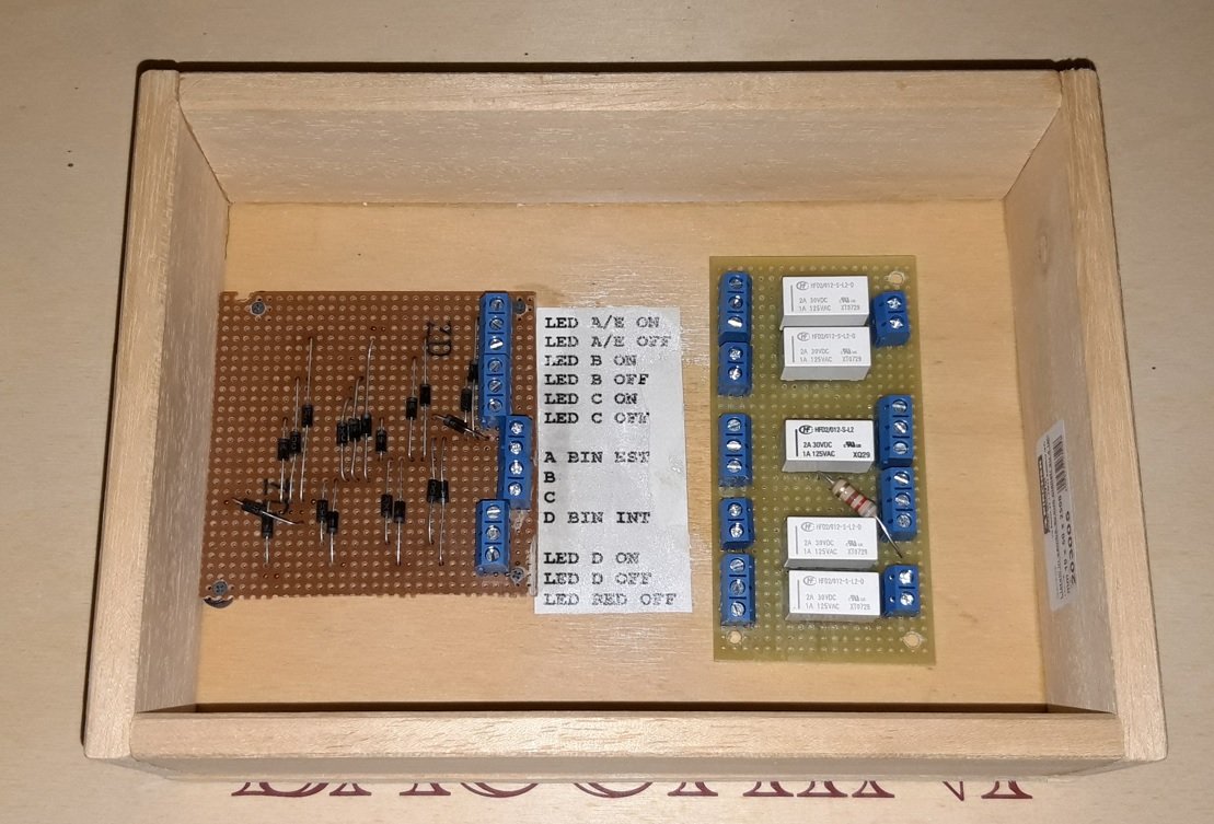 Dal lato della radice del primo deviatoio ho messo anche un relé bistabile che, in sincronia con l’attivazione degli itinerari automatici e/o manuali, pilota un segnale luminoso in entrata.