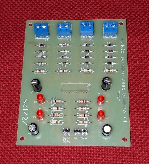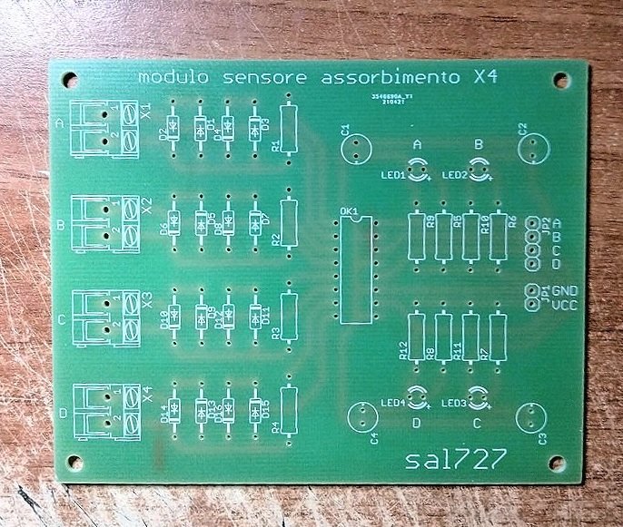 Salvatore ha disegnato e fatto realizzare dei pcb per un modulo sensore a 4 canali che faceva proprio al caso mio e gentilmente me ne ha fornito uno che ho subito realizzato.