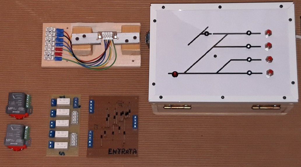 Procuratemi le componenti elettroniche necessarie ho montato il dispositivo; in figura manca ancora solo l’optoisolatore centrale a 4 canali ma il grosso è fatto.