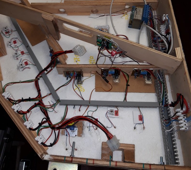 I servomotori sono mossi ciascuno da un piccolo circuito elettronico analogico realizzato su piccole schede millefori comprensive di switch per la polarizzazione del cuore del deviatoio e indicazione led sul sinottico della posizione del deviatoio stesso.
