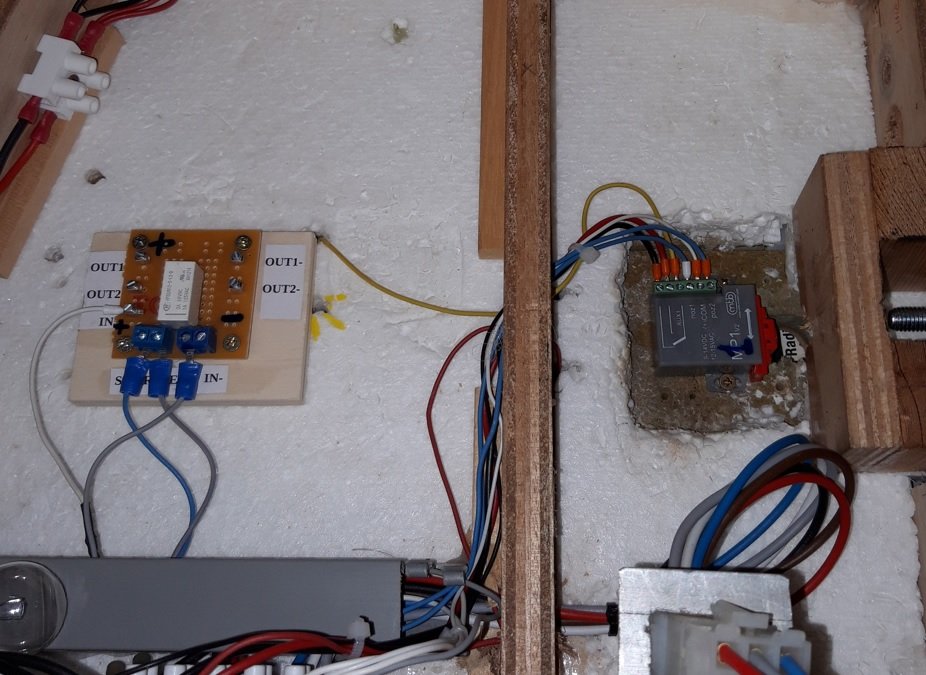 Ora invece ho alimentato direttamente tutti i binari del lato in entrata e ho installato un modulo per cappi LK200. Due soli fili di alimentazione che si quadruplicano a livello del connettore per sfruttare la connessione esistente.