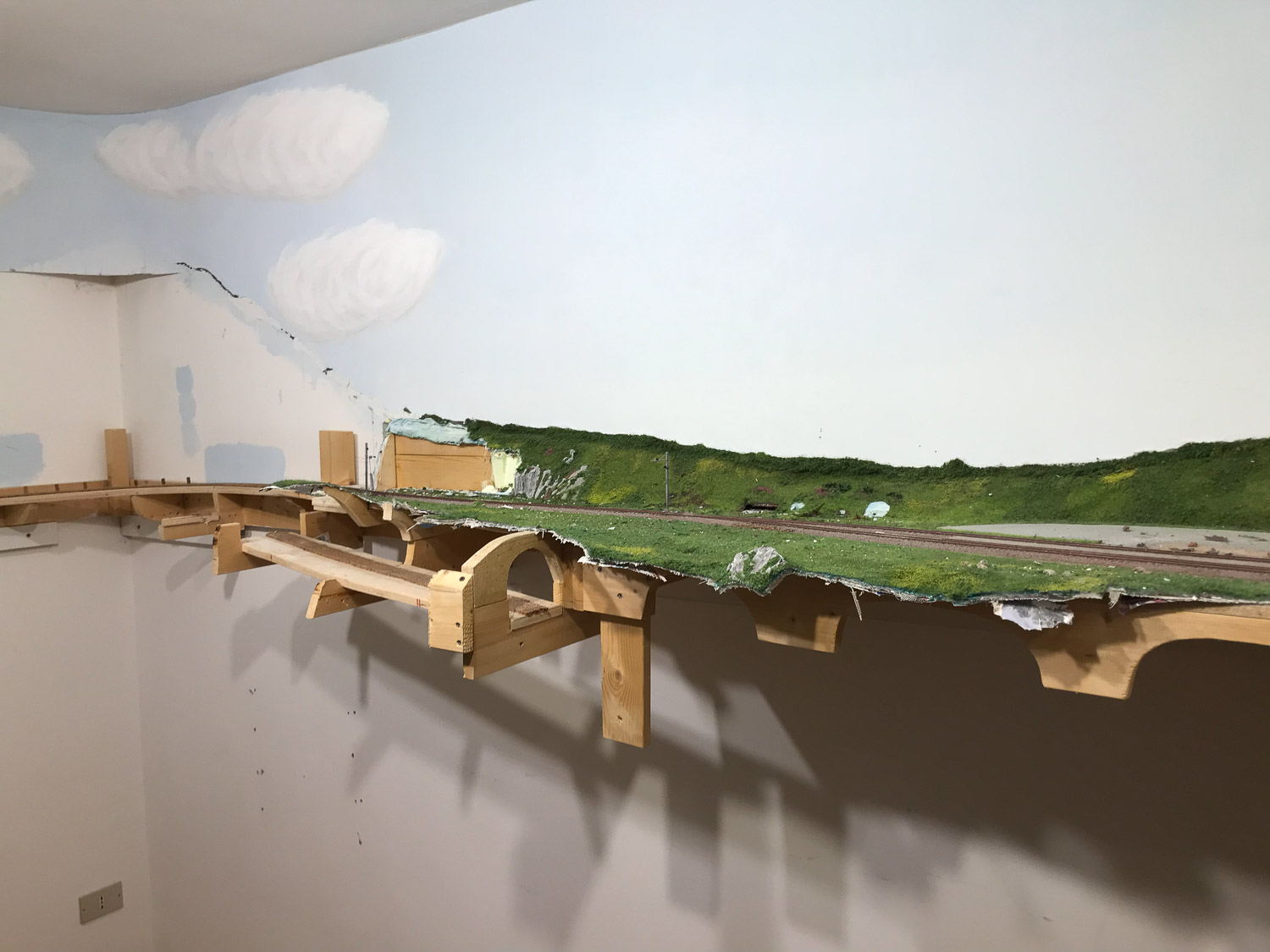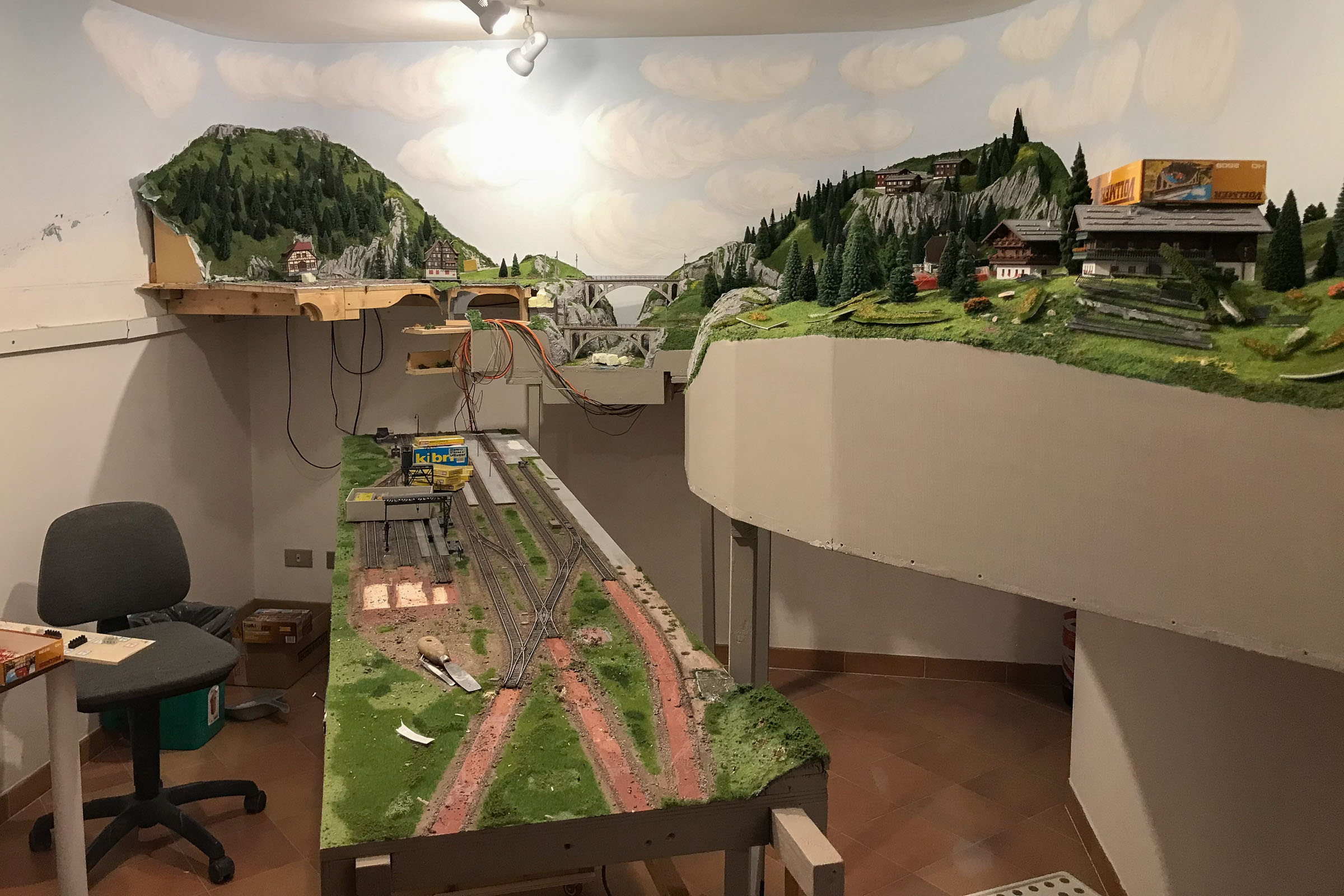- prevedo un solo segmento rimovibile per entrare nella stanza (plastico in H0). Il plastico in H0m è alto abbastanza da poterci passare sotto piegandosi.