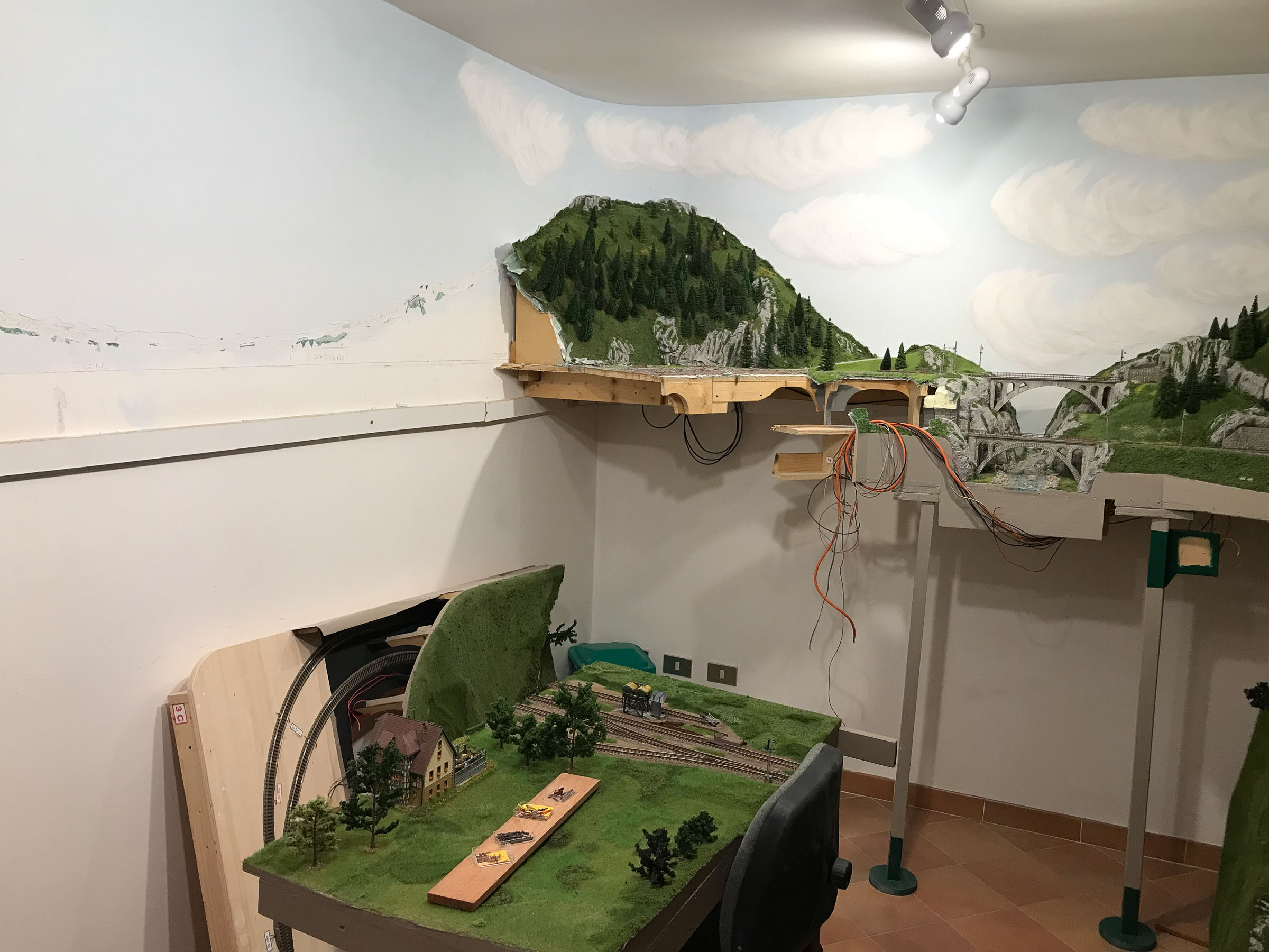 In questo caso il plastico RhB si posiziona a 150 cm dal suolo e corre a 360° attorno a tutte le pareti.