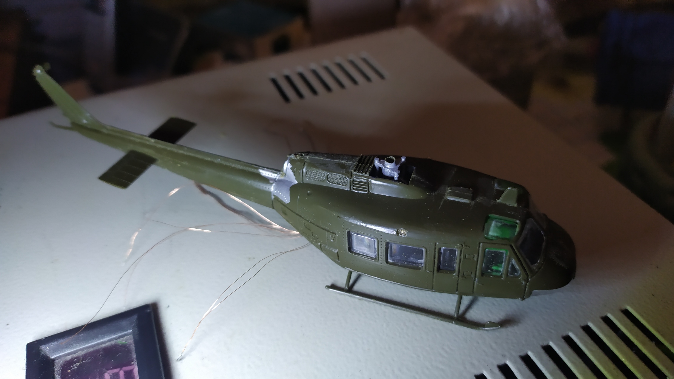 Il modello, nel nostro caso è un kit di montaggio in plastica (scala 1:87) dell'elicottero Bell UH1-1D "SAR" della Herpa codice 744423 (434).