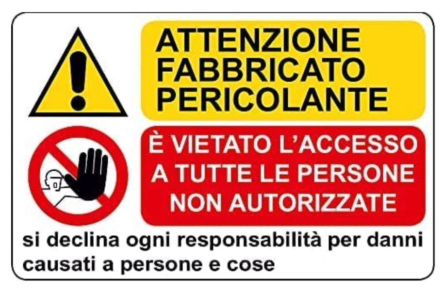 mi permetta di ritenere inutile l'esposizione del cartello da Lei suggeritomi, in quanto siamo in Italia, nel nulla o quasi ed è una proprietà privata, il rigore è esclusivo della Juve [258] ; convengo che lo stato dell'immobile è molto pericolante, nell'immediato la proprietà non ha alcuna intenzione di investire nell'immobile che è oltretutto soggetto alle normative della Soprintendenza ai Beni Culturali.