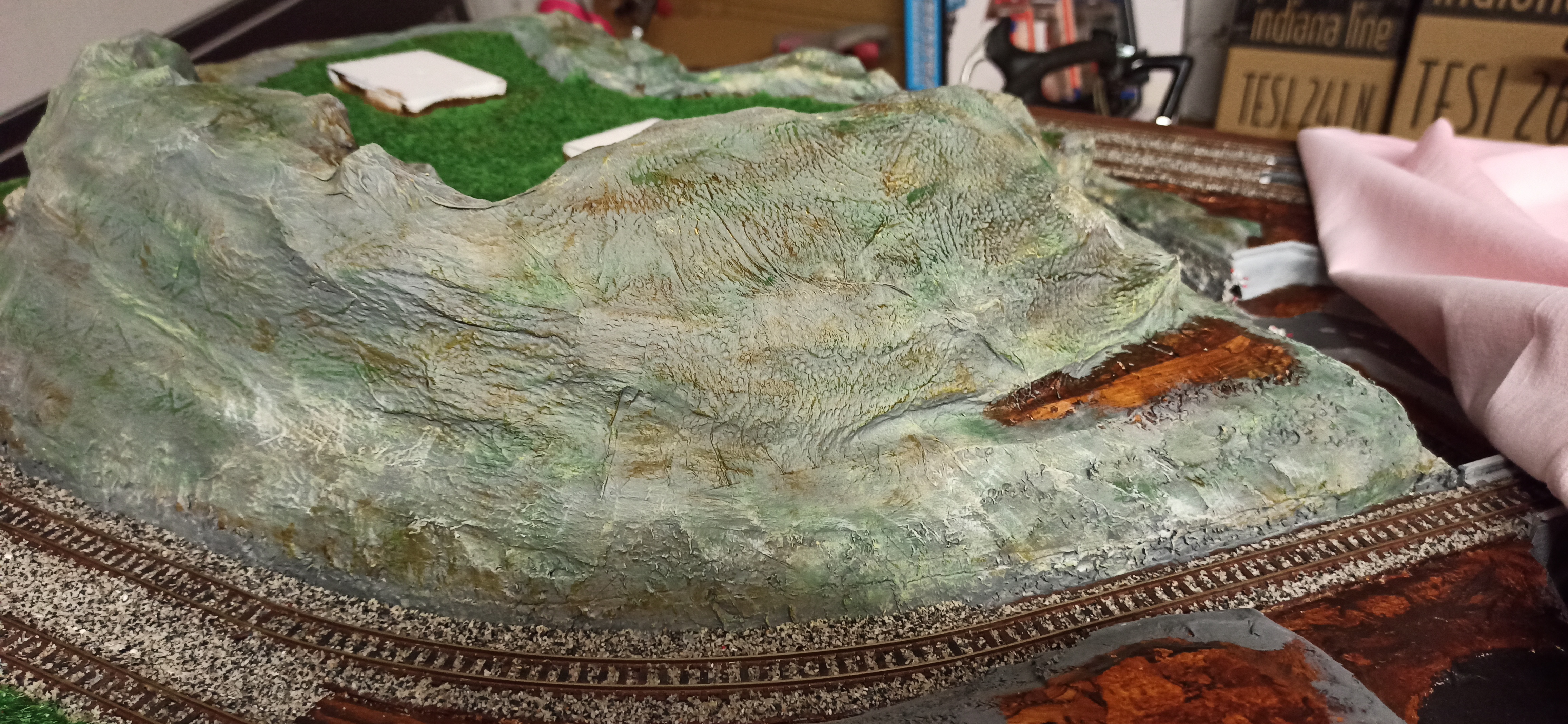 Oggi ho provato a lumeggiare una porzione di montagna, però non sono completamente soddisfatto del risultato. Con la tecnica del pennello asciutto ho usato del giallo crema, verde muschio e terra di Siena bruciata. Non saprei se devo schiarire di più o usare altre tonalità di colore. Voi che dite: