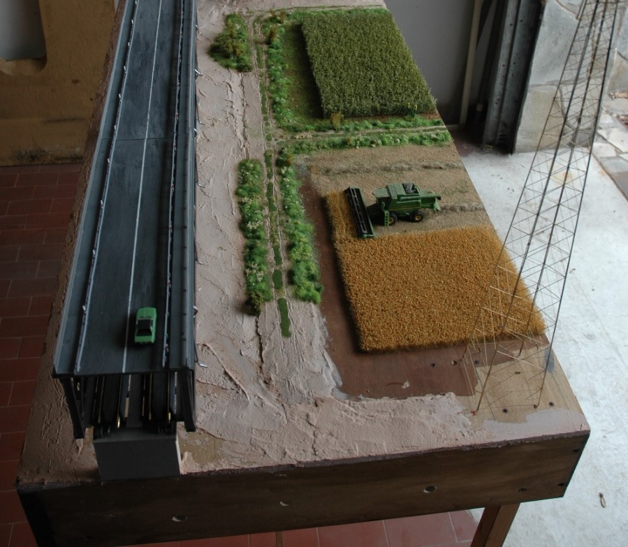 nel frattempo sto valutando come realizzare e dimensionare la montagna e dove collocare le due (probabilmente tre) pale eoliche, per questo motivo per trovare ispirazione dal vero mi sono concesso una gita fuori città per visitare il Parco eolico del monte Mesa (all'inizio della Val d'Adige), le pale eoliche viste da vicino sono imponenti (e rumorose):