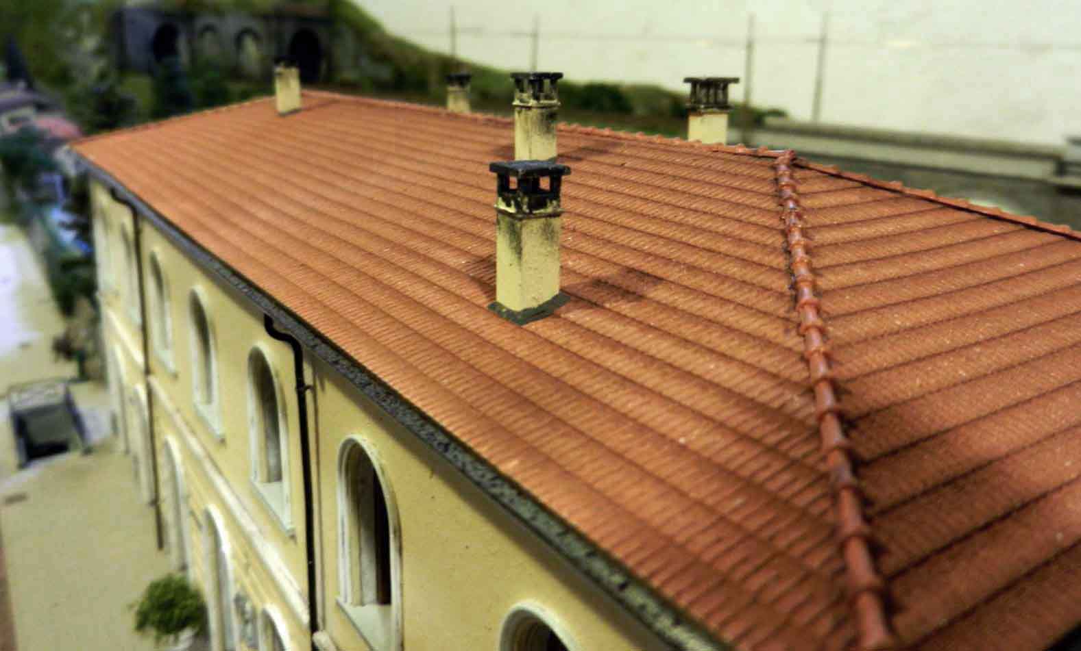 Il tetto dovrebbe essere coperto da marsigliesi. Questo laterizio ha una superficie molto movimentata e,per me, difficile da riprodurre. Con il sistema che ho adottato , una volta finito e colorato, darà l'impressione