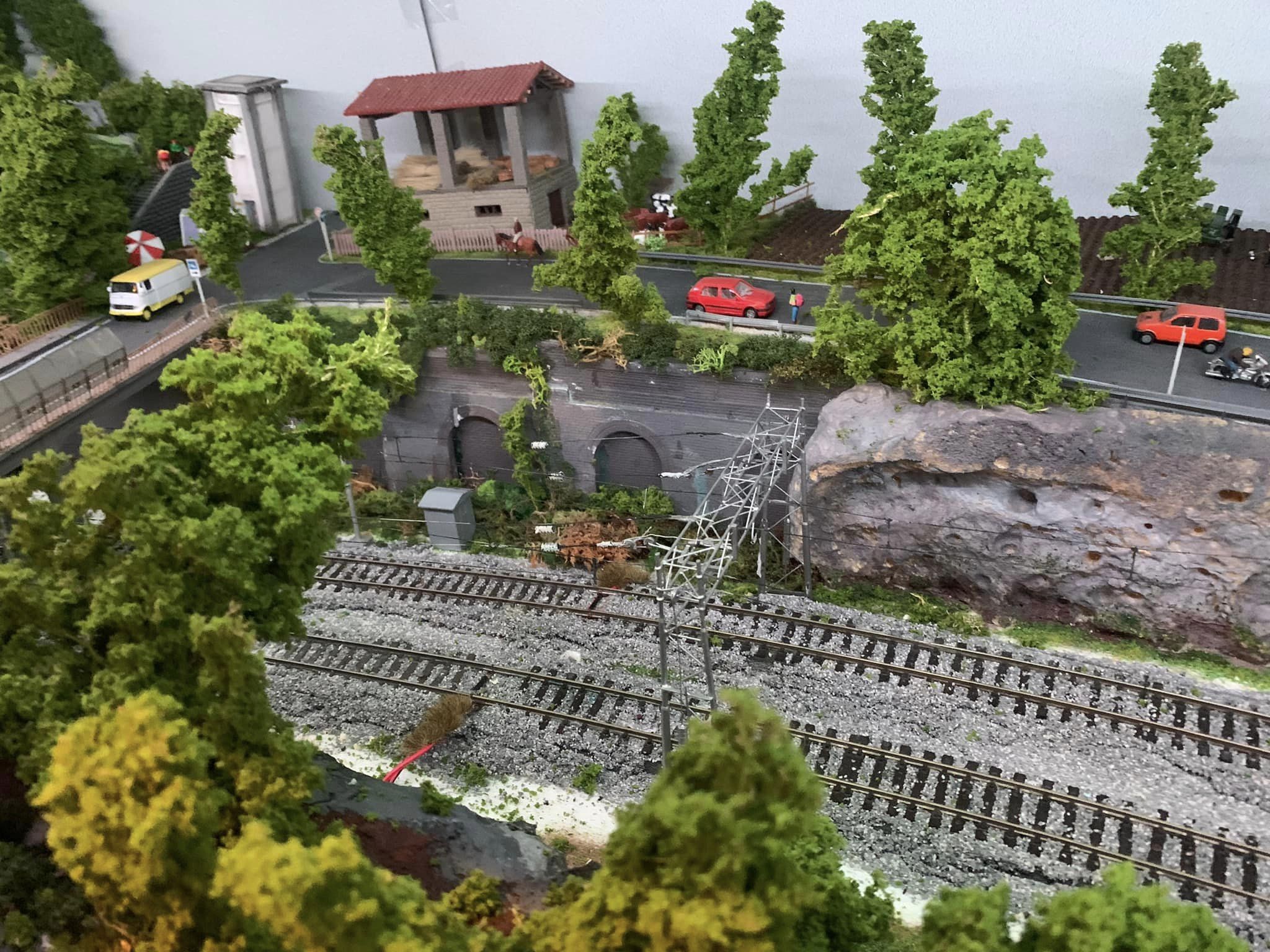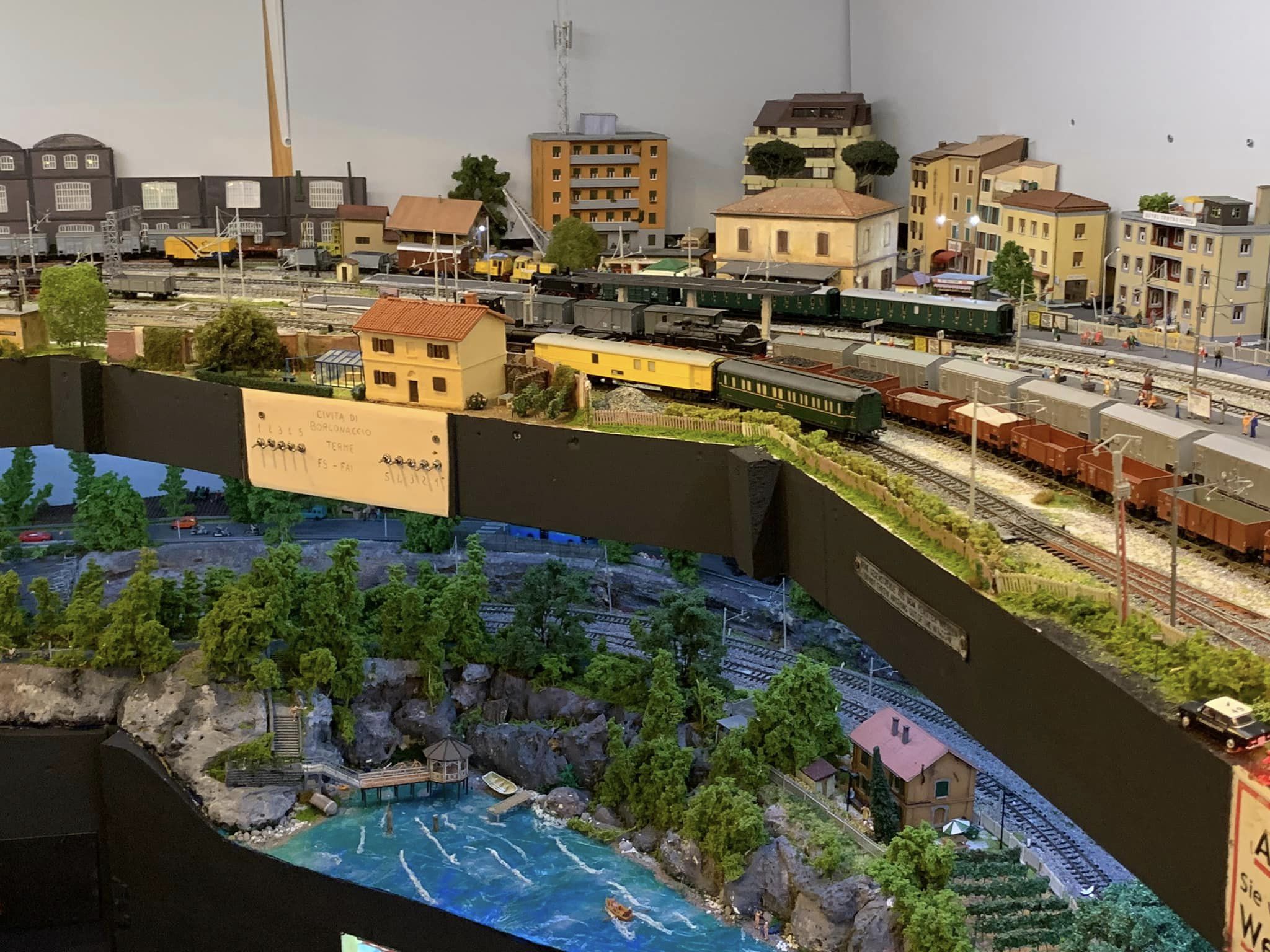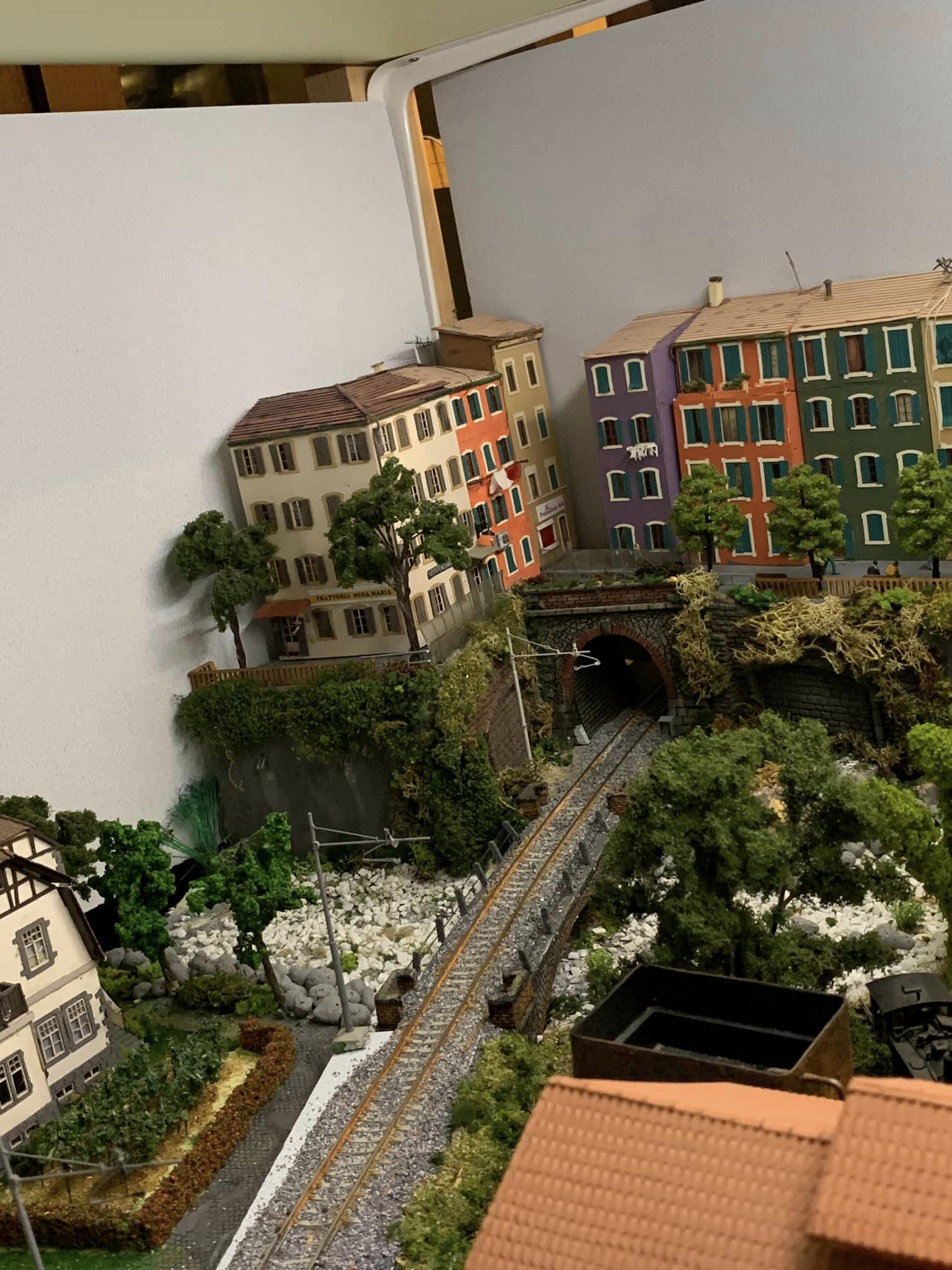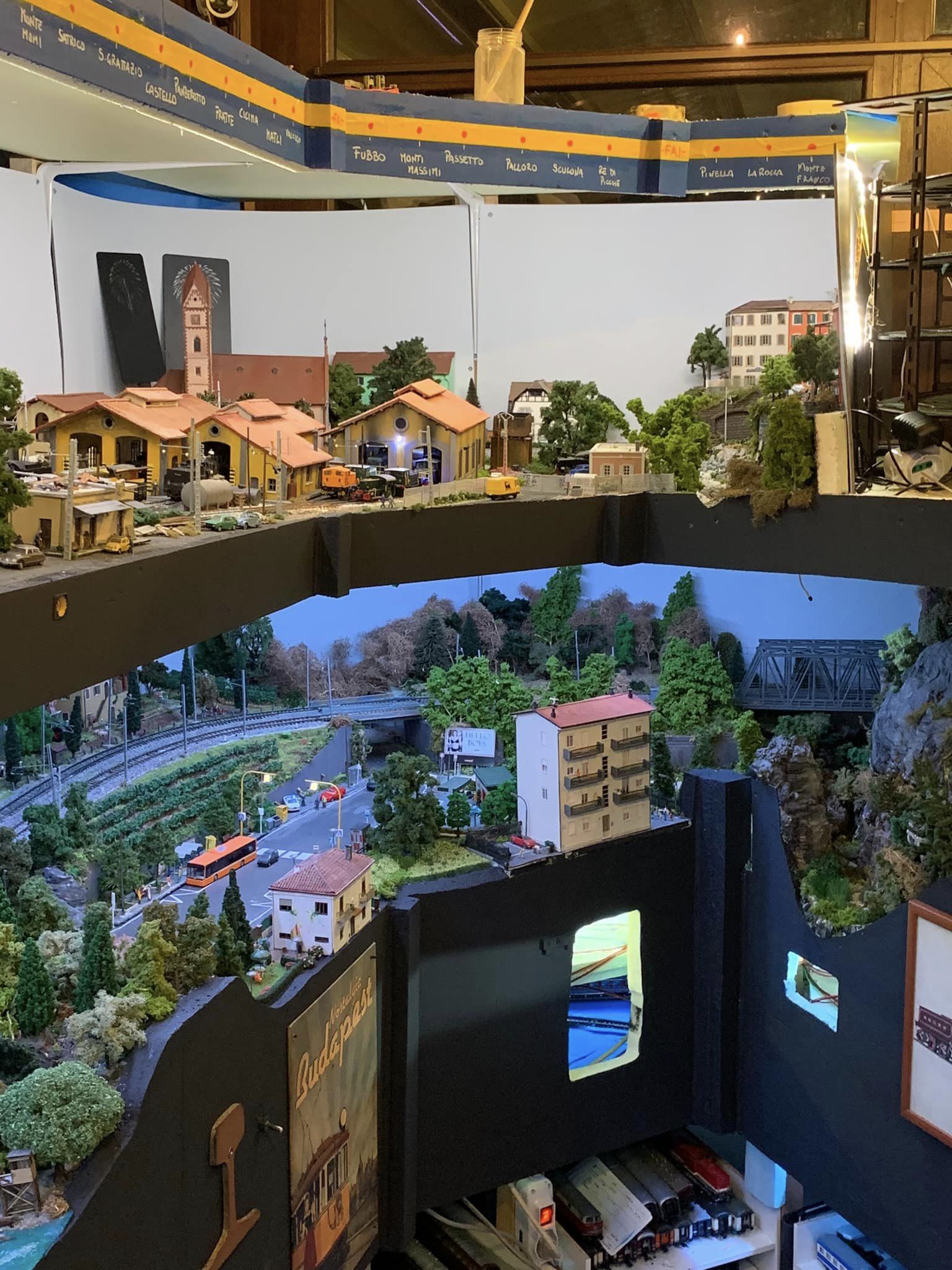 Sono però riuscito a salvare molte cose del vecchio plastico e una volta terminati i lavori nella stanza ho ripreso la costruzione di un nuovo impianto, questa volta però ha una concezione un po' diversa, ovvero, invece di essere un unico piano a vista, ho creato due piani con ambientazioni diverse, mi sono ispirato ai plastici americani multidesk e a quelli francesi che hanno una cornice come fossero un quadro. Anche se a buon punto, ci sto ancora lavorando, mancano ancora tanti particolari, la linea aerea al piano superiore, e tanti dettagli da rifinire...