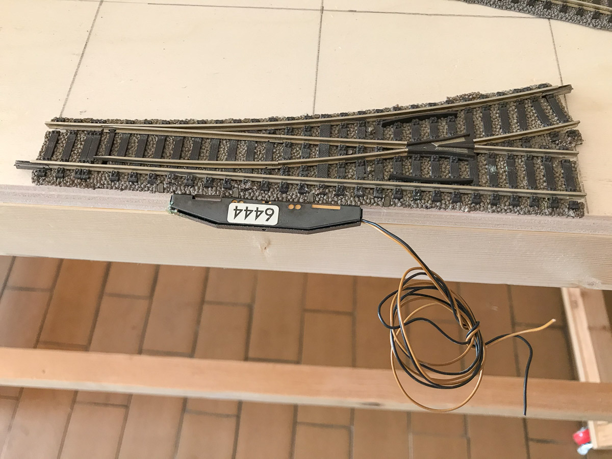 Considerato che non avevo spazio per inserire i servo sottoplancia, per comandare gli scambi ho optato per i motori fleischmann 64000 che verranno installati in senso contrario in modo da non essere visibili. Ho già predisposto i fori e sono in attesa che arrivano i restanti motori, per cablare tutto.