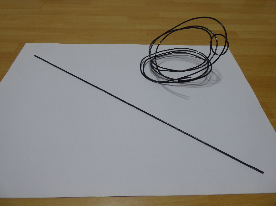 Si sbroglia la matassa almeno per la lunghezza dello spezzone che ci interessa. Poi si raddrizza lo spezzone o pazientemente a mano e martello, o usando un formatore: ovvero un tubicino di metallo che lo spezzone dovrà attraversare ma meglio un formatore fatto da tavolette di multistrato con un incavo dove infilare lo spezzone da raddrizzare.