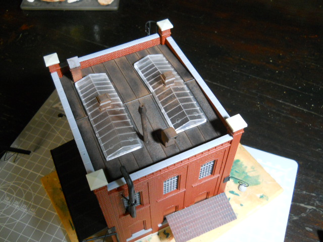 Piccolo aggiornamento diorama Leopold, ormai quasi finito l'edificio in mattoni, aggiunta una tettoia che non fà parte del kit anche per coprire i fori rimasti, in tetto è già invecchiato e sporcato anche se andrà rivisto, ora non resta che l'invecchiamento con pigmenti puri e completare il tutto