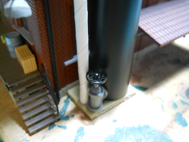 Piccolo aggiornamento diorama Leopold, nel mentre proseguo ad autocostruire i tralicci per la gru e dare il primer ad alcuni pezzi, vado avanti ad arricchire alcuni angoli dell'edificio mettendo vari serbatoi, tubi e valvole , le valvole che vedete le ho trovate dall'amico Giuseppe Abbiati il volantino l'ho cambiato con un bottone automatico molto più realistico, anche questa da un'idea di Giuseppe