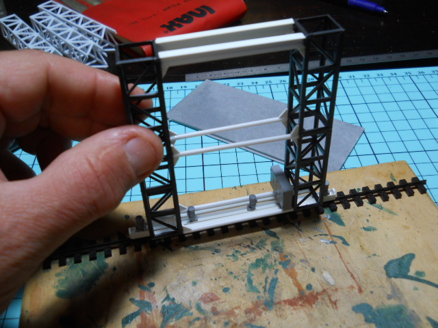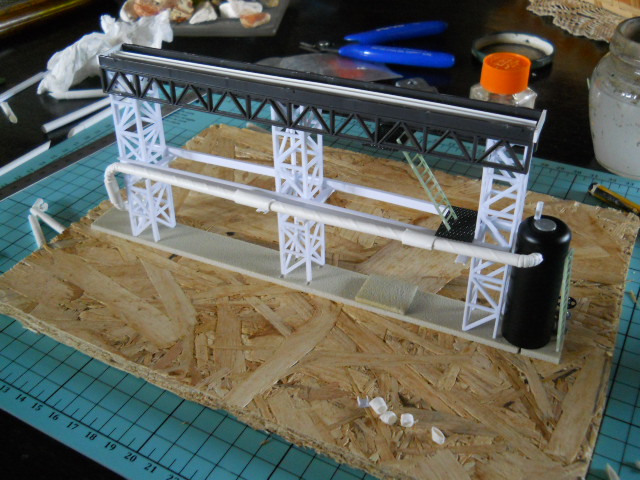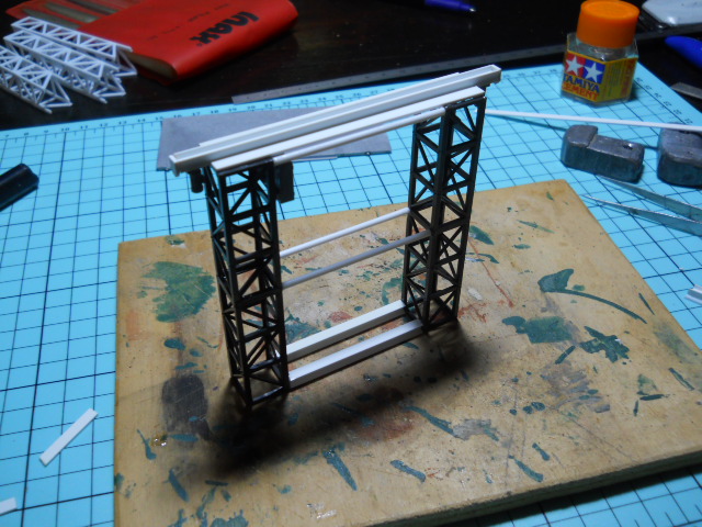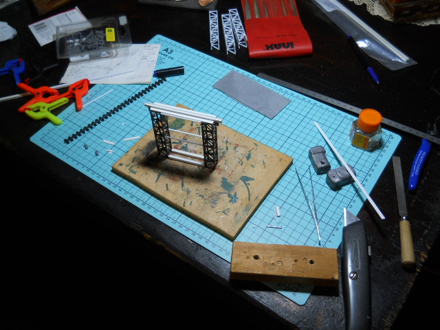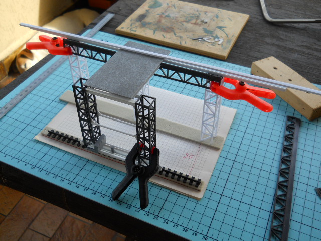 Porto avanti piano piano anche il diorama del Leopold, per la gru ho deciso di utilizzare quella del diorama del vecchio scalo merci fs Como lago già fatta tempo fà stò autocostruendo i tralicci mancanti per fare la struttura a cavalletto della gru con le lastre bianche che vedete in foto