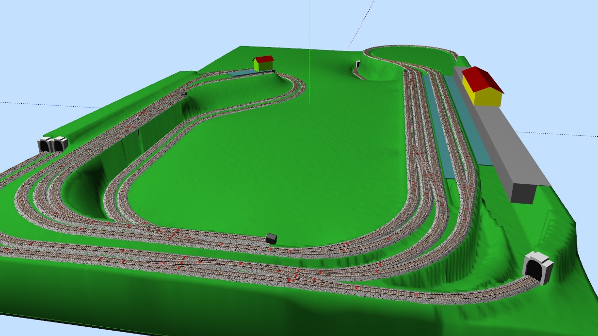 Ti propongo un'altra ipotesi per avere più binari in vista. Si rinuncia alla stazioncina di montagna ma si amplia il deposito carri.