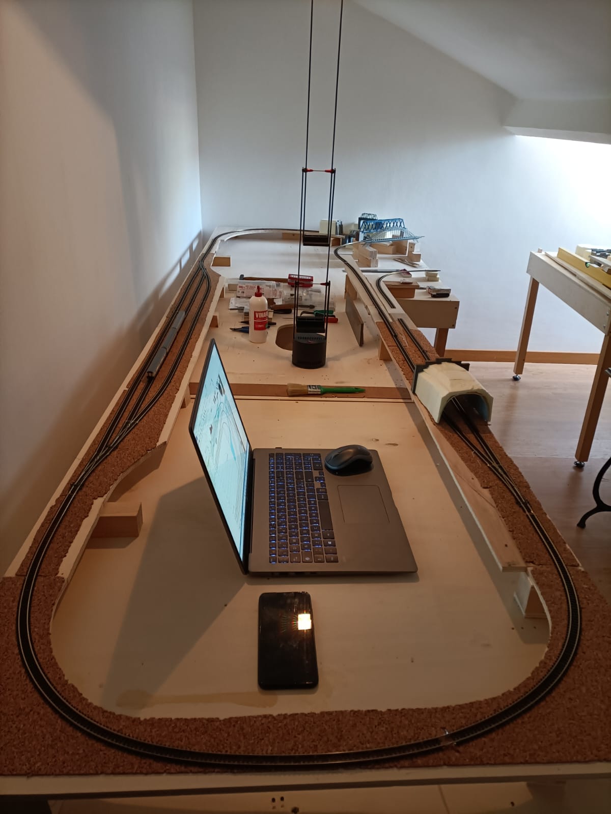 Tutto ciò ha comportato anche uno stop ed uno smaltellamento del mio plastico che la nuova casa non aveva lo spazio per contenerlo ed alla progettazione di un nuovo plastico adatto allo spazio, una stanzetta mansardata (conditio sine qua non per l'acquisto della nuova abitazione) che ho a disposizione.