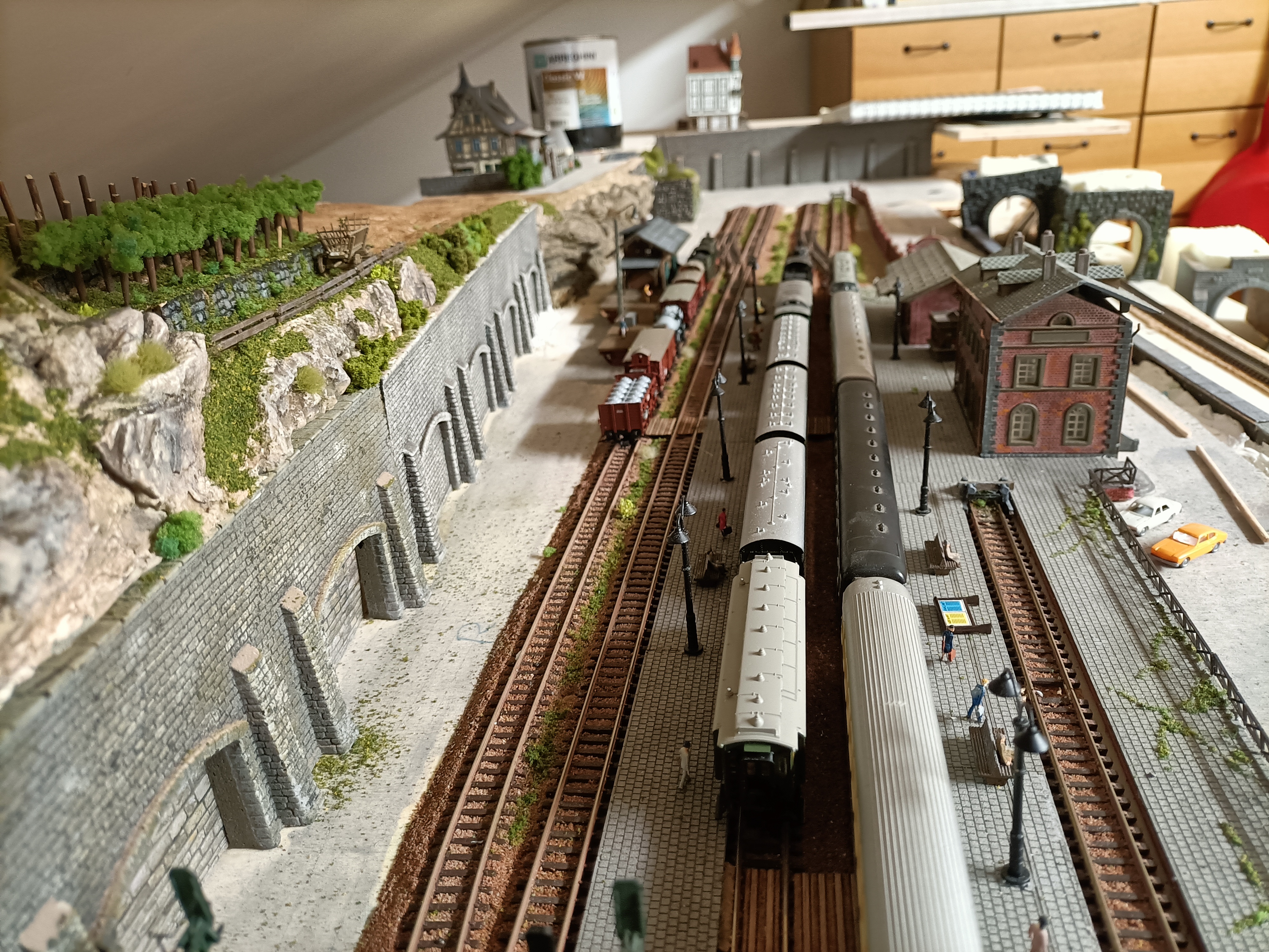 Vi allego anche due video nel primo si vede il plastico nella sue interezza con la stazione di Altenburh che è solo una idea nel secondo l'arrivo della BR 38 alla stazione di Munster.