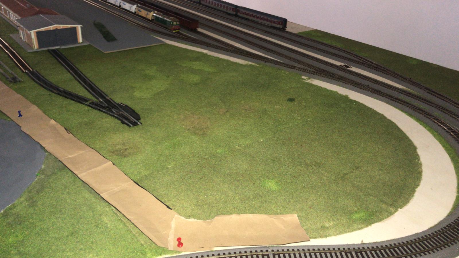 Come da foto il mio intento è quello di creare una strada sterrata (c'è a Piacenza è all'interno dello scalo) che corre a fianco della staccionata e vorrei raccordarla al piazzale davanti i caseggiati, facendogli fare la curva adiacente i binari. Sicuramente dovrò restringerla così mi sembra troppo larga, giusto per riempire un po' questa zona, in quanto nella realta è piena di "rifiuti" ferroviari e binari che vanno allo scalo dalla linea verso il ponte del Po