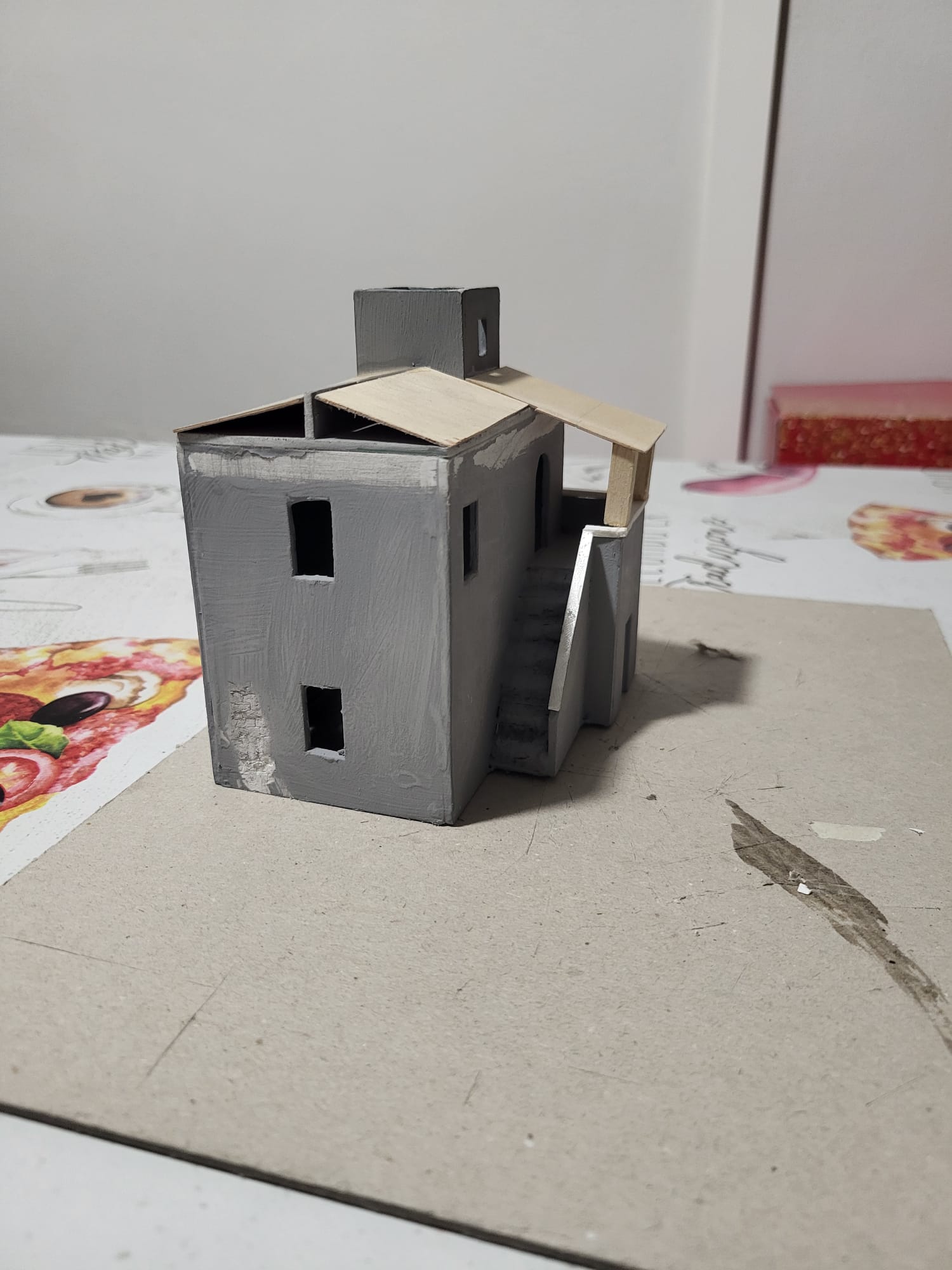 Capitolo colorazione; ora che è montato e che alcune parti, anche minime tipo le travi in legno e il solaio in legno della tettoia in cima alle scale, avranno una colorazione diversa rispetto al resto del corpo, forse era meglio colorarle prima di montare? Ho paura che nel colorare altre minime parti possa in qualche maniera sporcare, ma di contro mi domando quanto dia fastidio il colore alla colla.