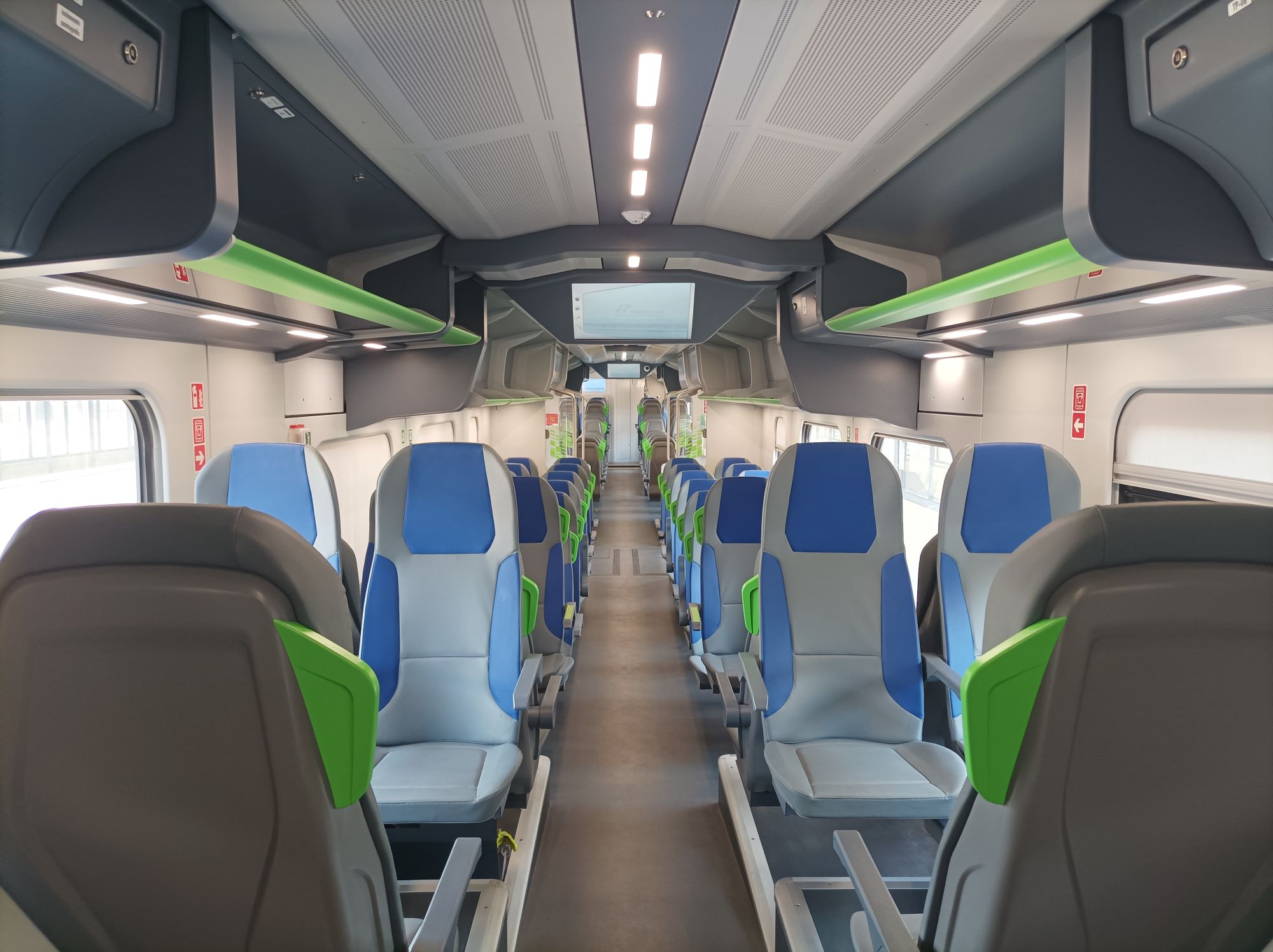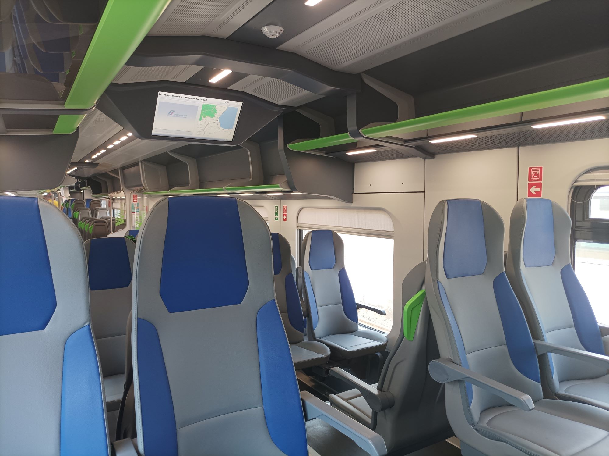 Il mezzo era ancora nuovo, durante la marcia è silenzioso e stabile, anche nei comprati sopra il motore. A bordo sono disponibili monitor informativi, annunci audio, due servizi igienici, postazioni per bici e prese elettriche a tutti i posti (sia 230V che USB). Buone le doti di accelerazione e velocità, la climatizzazione mantiene una temperatura adeguata nonostante quella esterna fosse alta. Non ho invece capito come vengono gestite la batterie e il motore termico. Rispetto alle ALn 663 che prima facevano (e fanno ancora) servizio su questa linea, decisamente molto meglio. La capacità di posti, almeno quel giorno, era sovrabbondante.