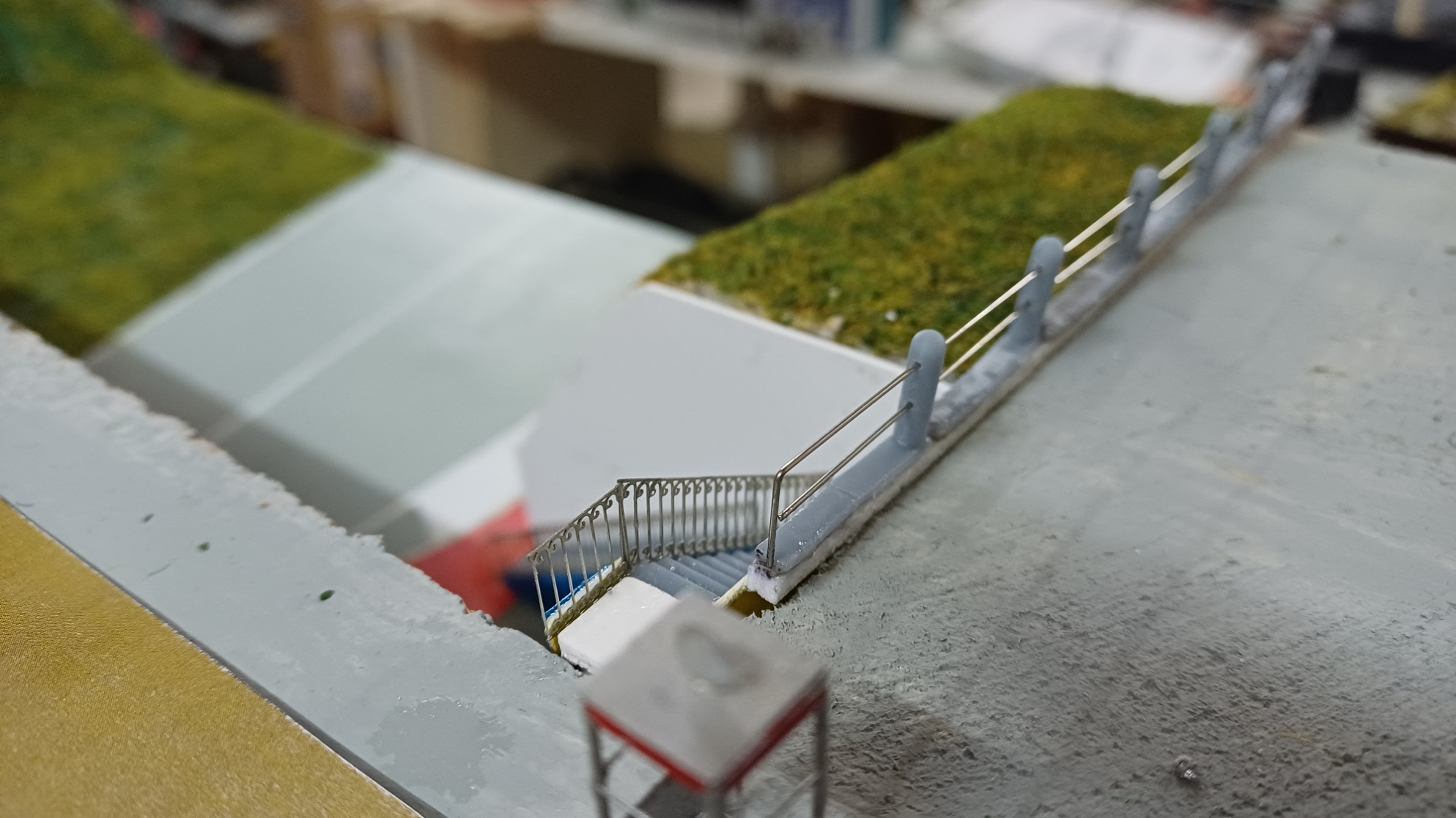 Successivamente ho montato le ringhiere sulle scale realizzate in fotoincisione e ho completato la recinzione dei pilastrini con