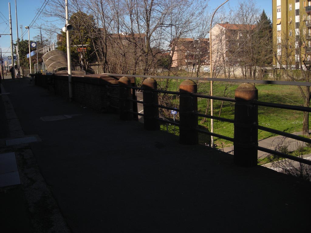 Il parapetto sopra il tunnel automobilistico di uscita dalla città di Desio è realizzato con pali tondi in cemento attraversati da profili in ferro. Per realizzarli, ho stampato in resina i singoli pali con una base in modo tale da unirli incollandoli su di un sempice foglio di carta. Sono 13 pali sul lato destro e 19 su quello sinistro del portale.