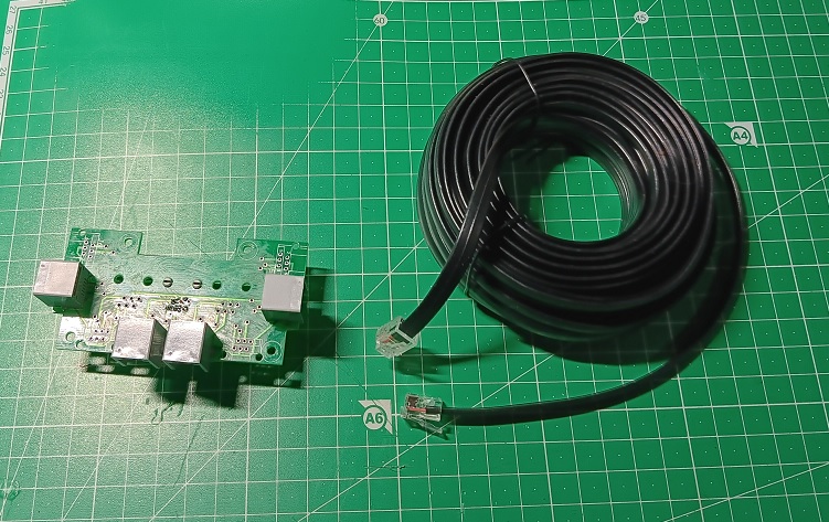 A completare l'impianto elettrico c'è infine il bus Loconet formato da un cavo di tipo telefonico a 6 fili che parte da una scatola di distribuzione. A questa scatola si collegano i moduli di retroazione del modulo e i palmari di comando delle locomotive.