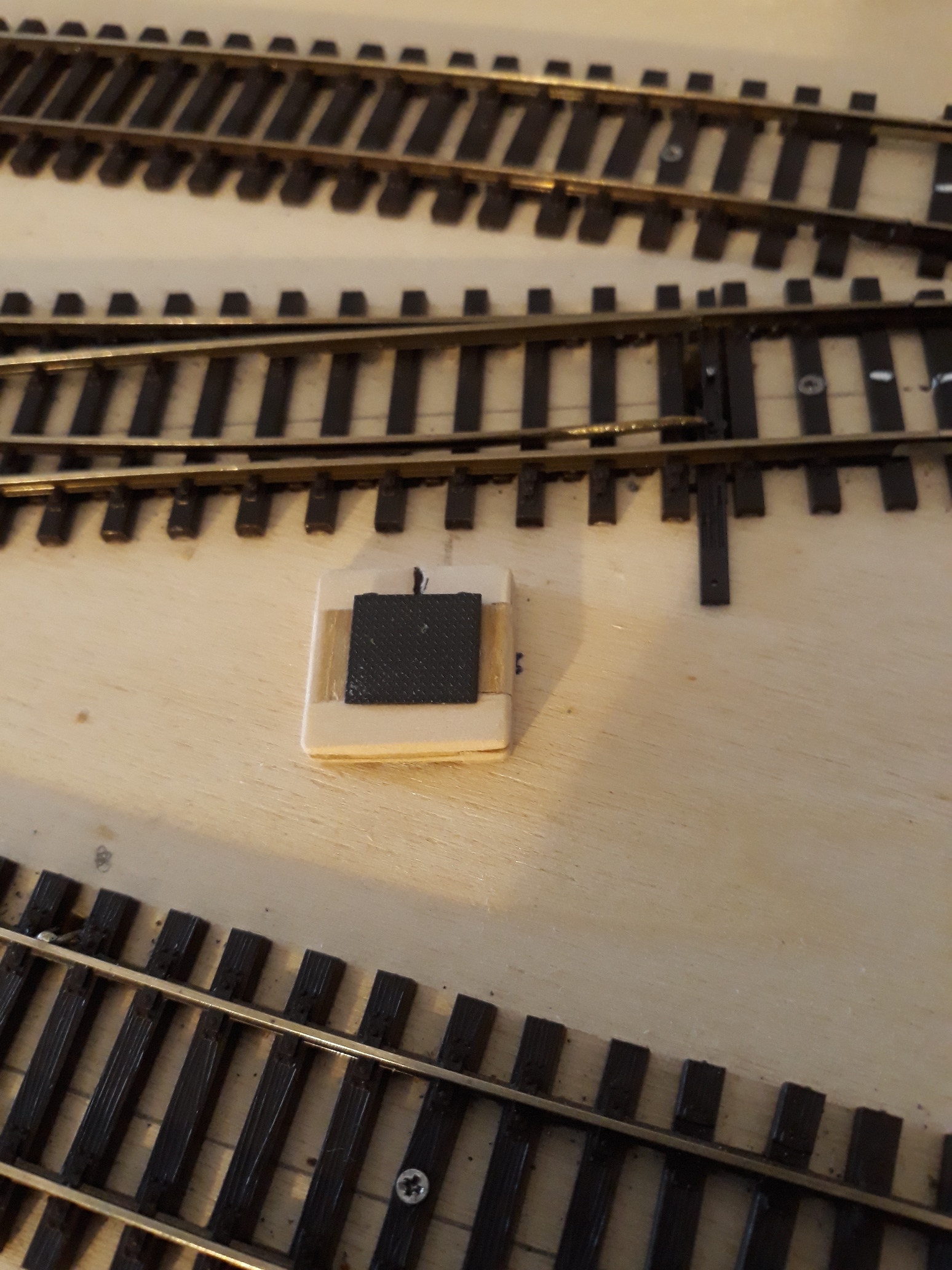 Terminata la posa della pavimentazione in forex della zona rimesse, prima di eseguire la verniciatura e l'invecchiamento simil cemento/asfalto, ho iniziato a realizzare i tombini che andranno a nascondere i deviatori a slitta per il comando elettrico dei deviatoi.