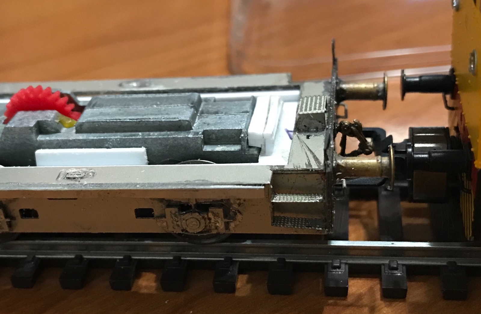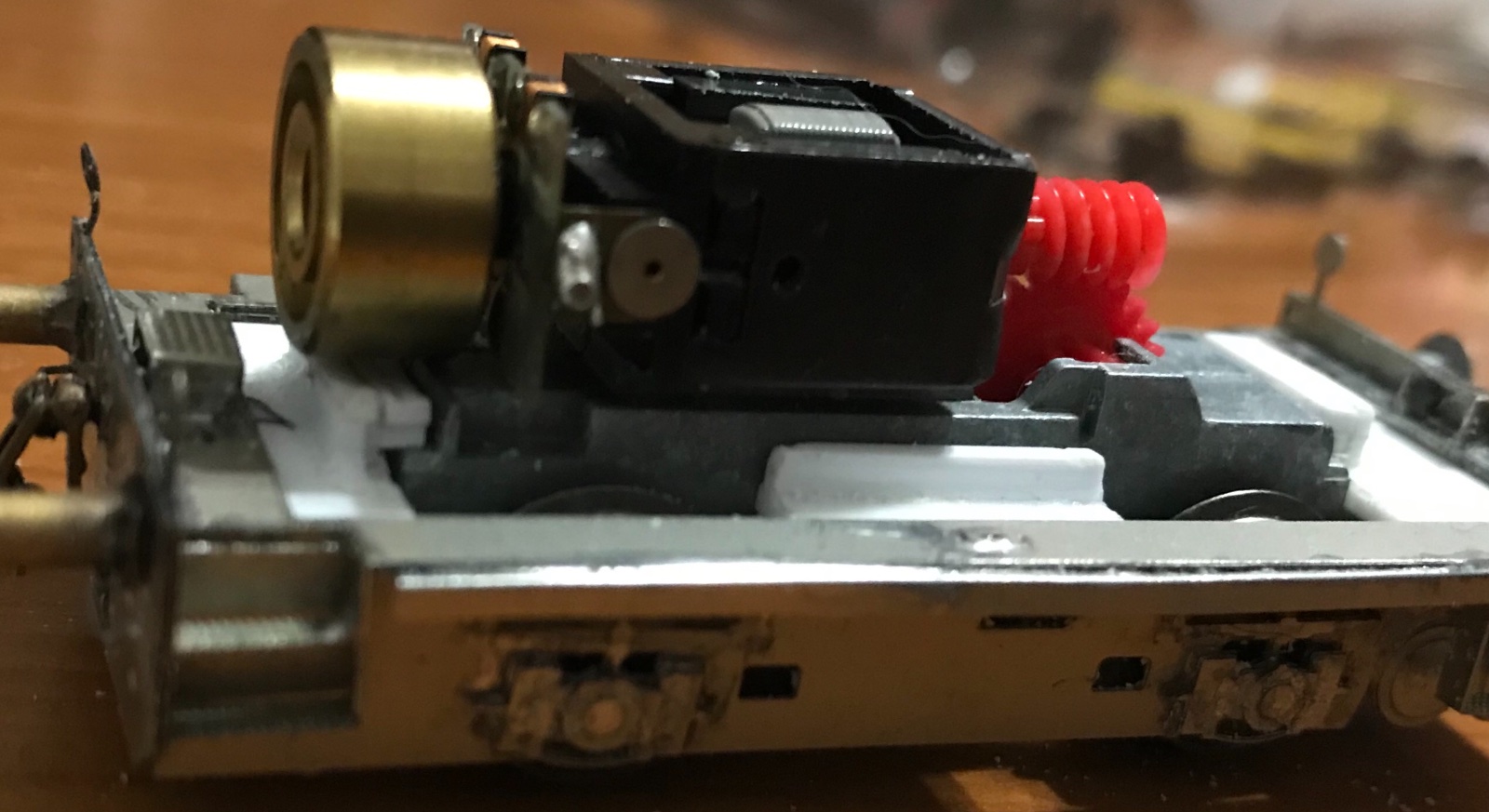 Devo alzare di circa 1mm il telaio esterno in modo che i respingenti siano allineati a quelli dell’altra loco.